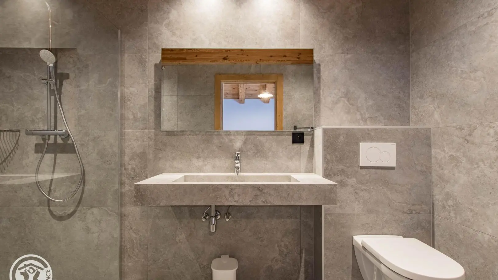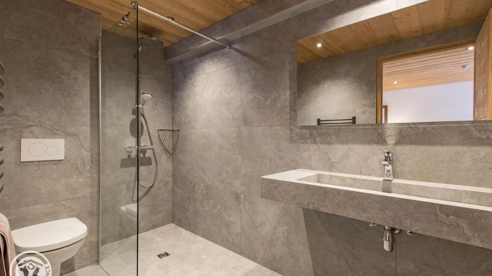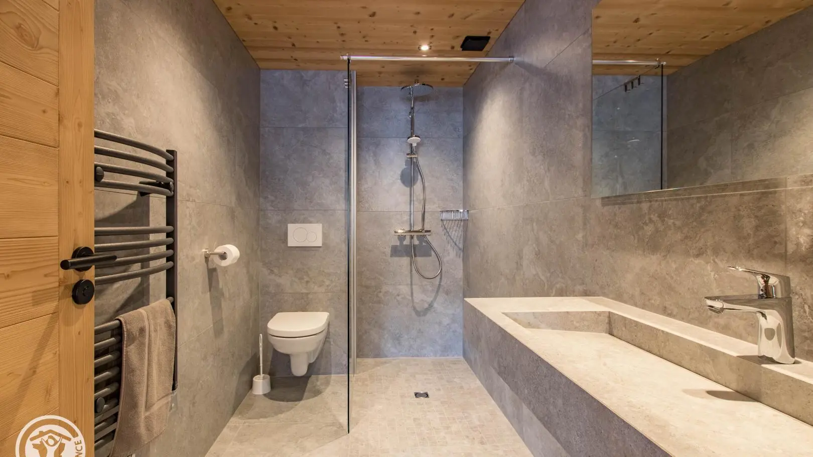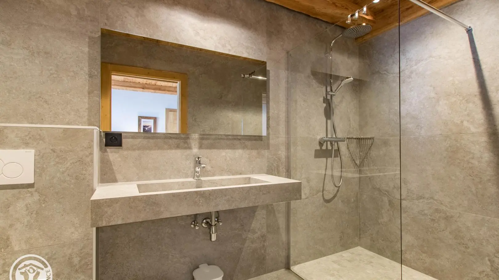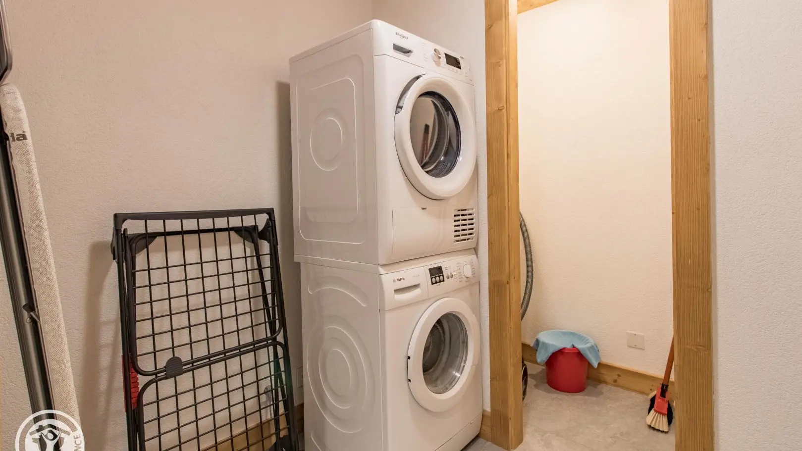 Aparte WC, wasmachine, bergruimte voor fietsen en ski's met elektrische schoenendroger. Verhuur van lakens/linnen.