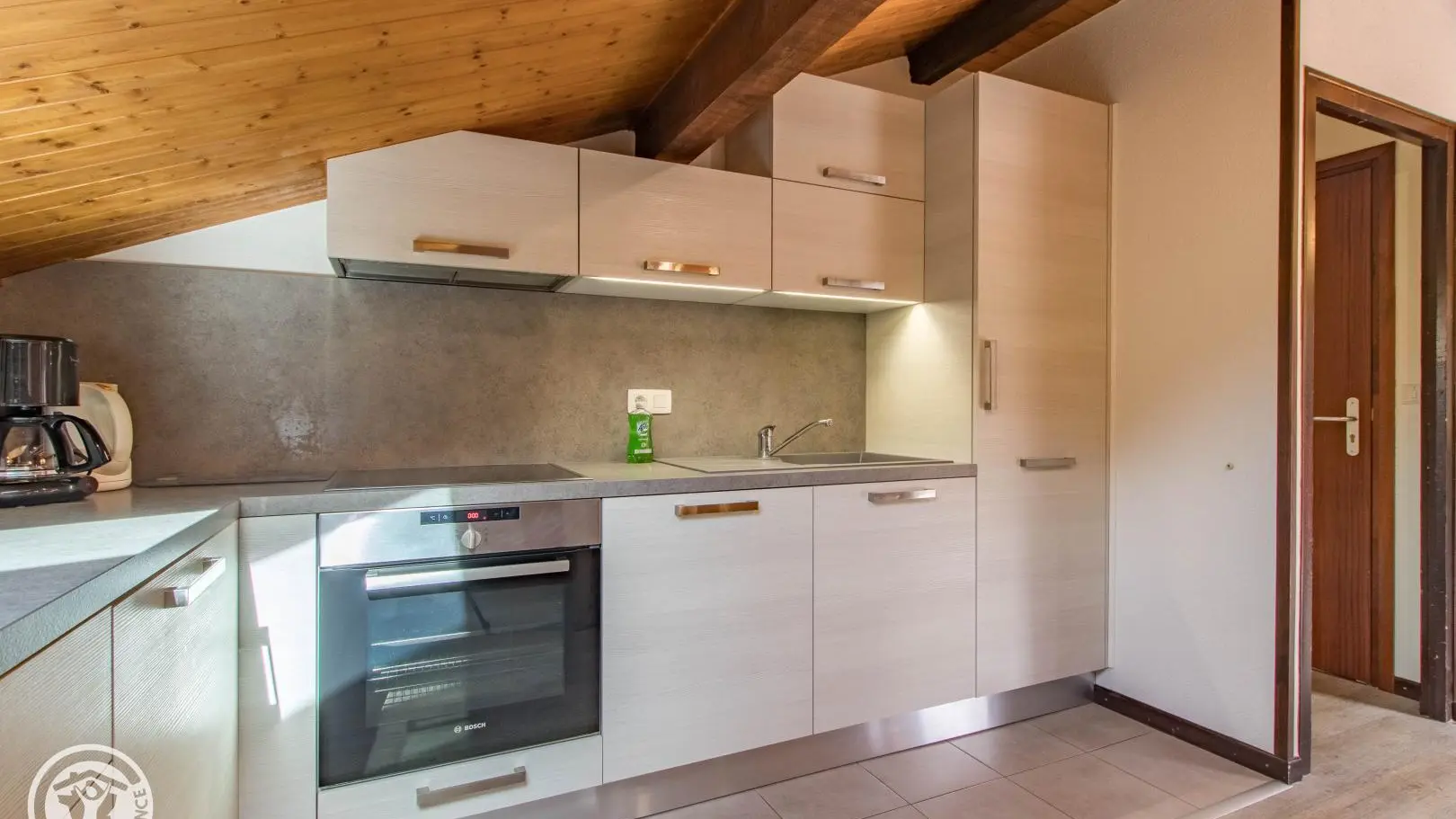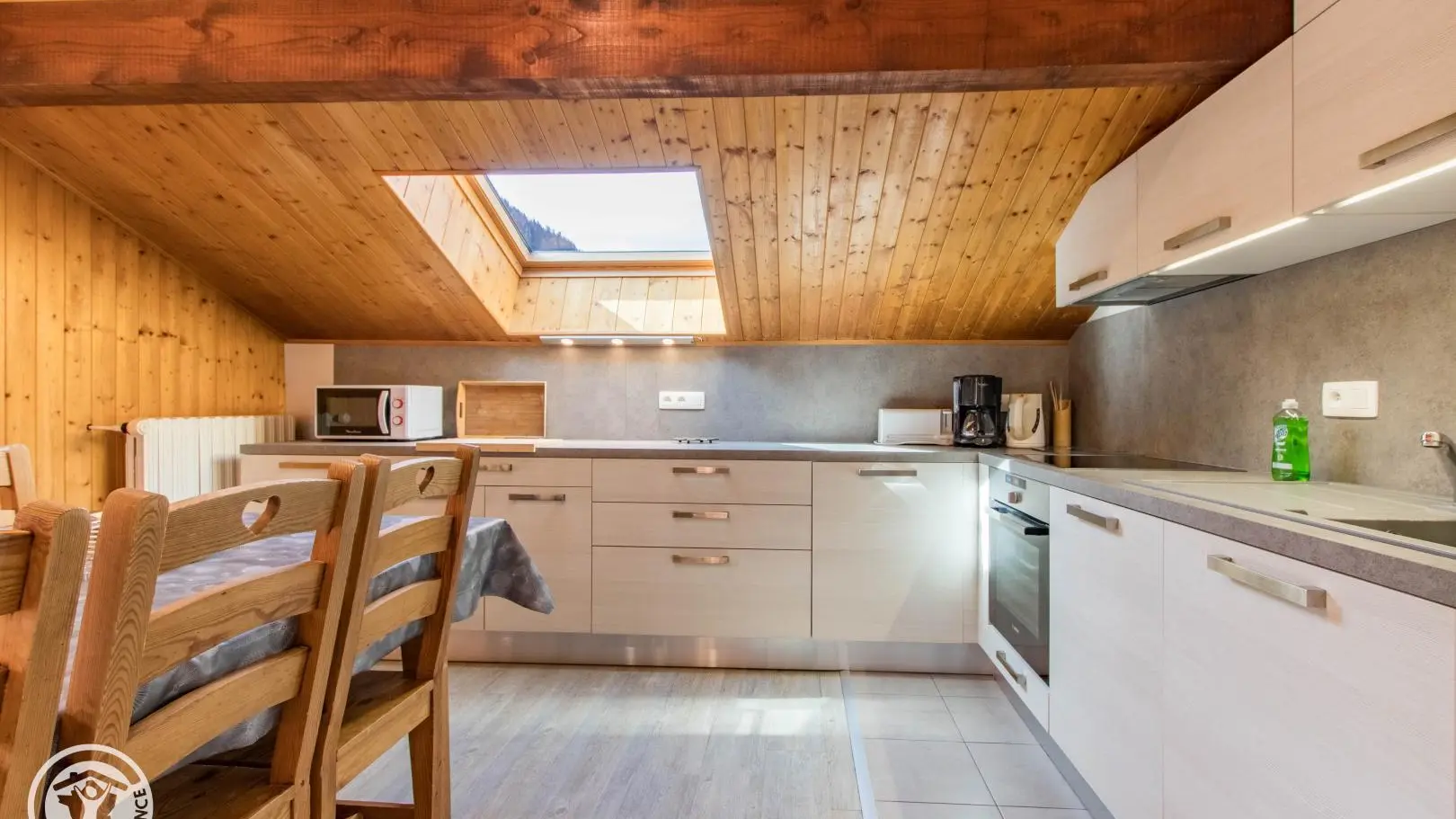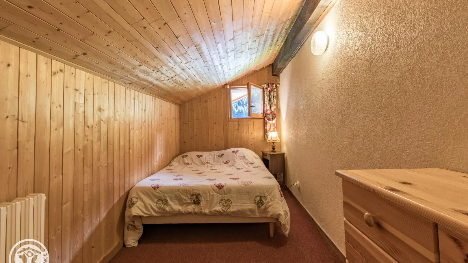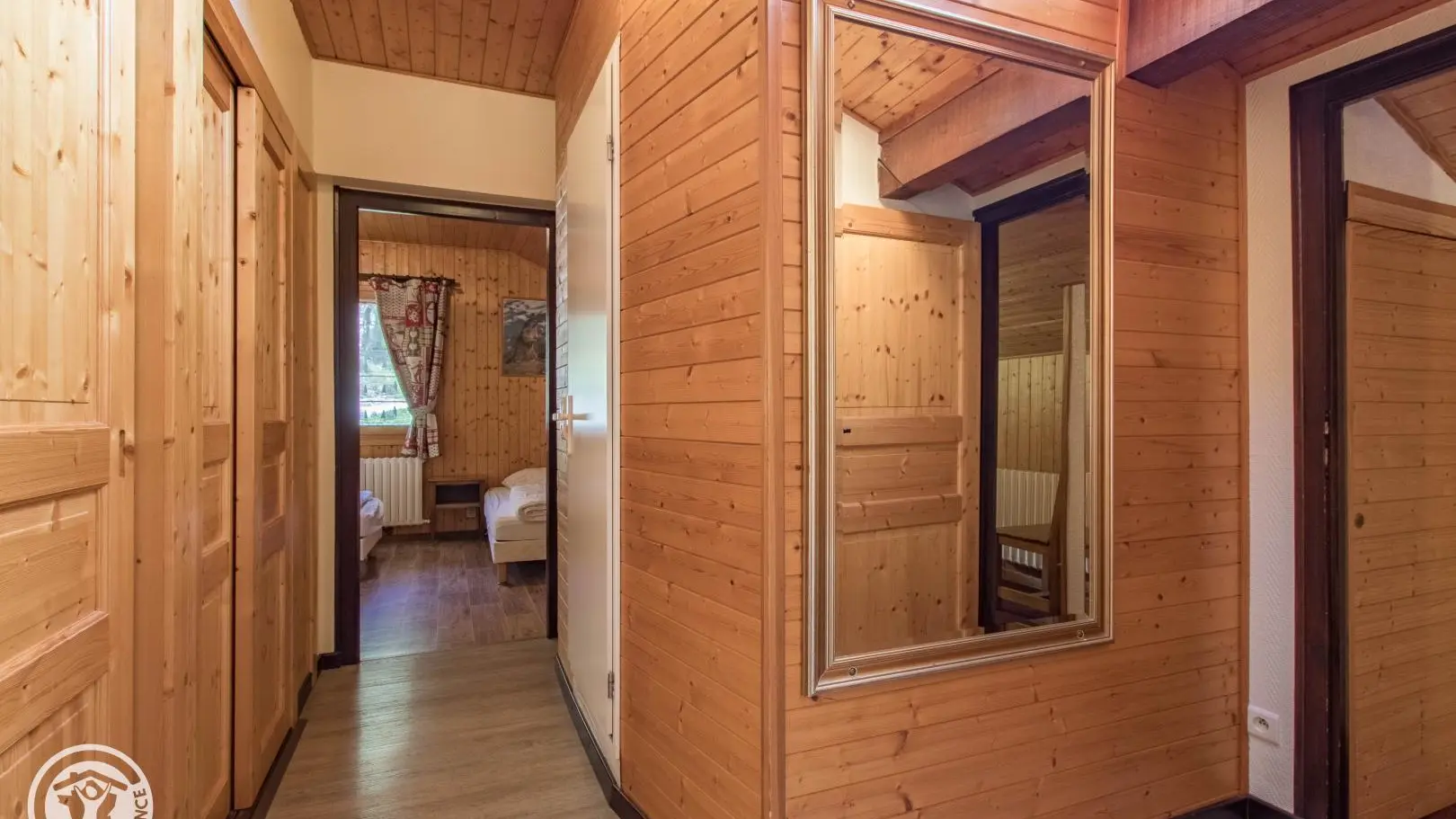 Ingerichte keuken met eethoek, uitgevend op de woonkamer (2 zitbanken waarvan 1 rapido, televisie 80cm), toegang tot het balkon op het zuiden (zicht op de pistes in de winter). 4 slaapkamers, waarvan 2 communicerend: slaapkamer 1 (1 bed van 160x200cm), slaapkamer 2 (zolder) communicerend / toegang via slaapkamer 1 (2 bedden van 90x190cm die dichter bij elkaar geschoven kunnen worden), slaapkamer 3 (3 bedden van 90x190cm), slaapkamer 4 (zolder) (1 bed van 140x190cm). 1 badkamer (met bad, douche, wc) + 1 kleine doucheruimte (compact type met douche, wc), aparte wc. Wifi internettoegang. Gemeenschappelijke wasmachine voor alle 5 de gîtes. Eigen skilocker. Optioneel: beddengoed, handdoeken, eindschoonmaak. Privé parkeerplaats voor het chalet. Fietsenstalling. Skilockers. Balkon met tuinmeubelen, uitzicht op de bergen (en skipistes in de winter).