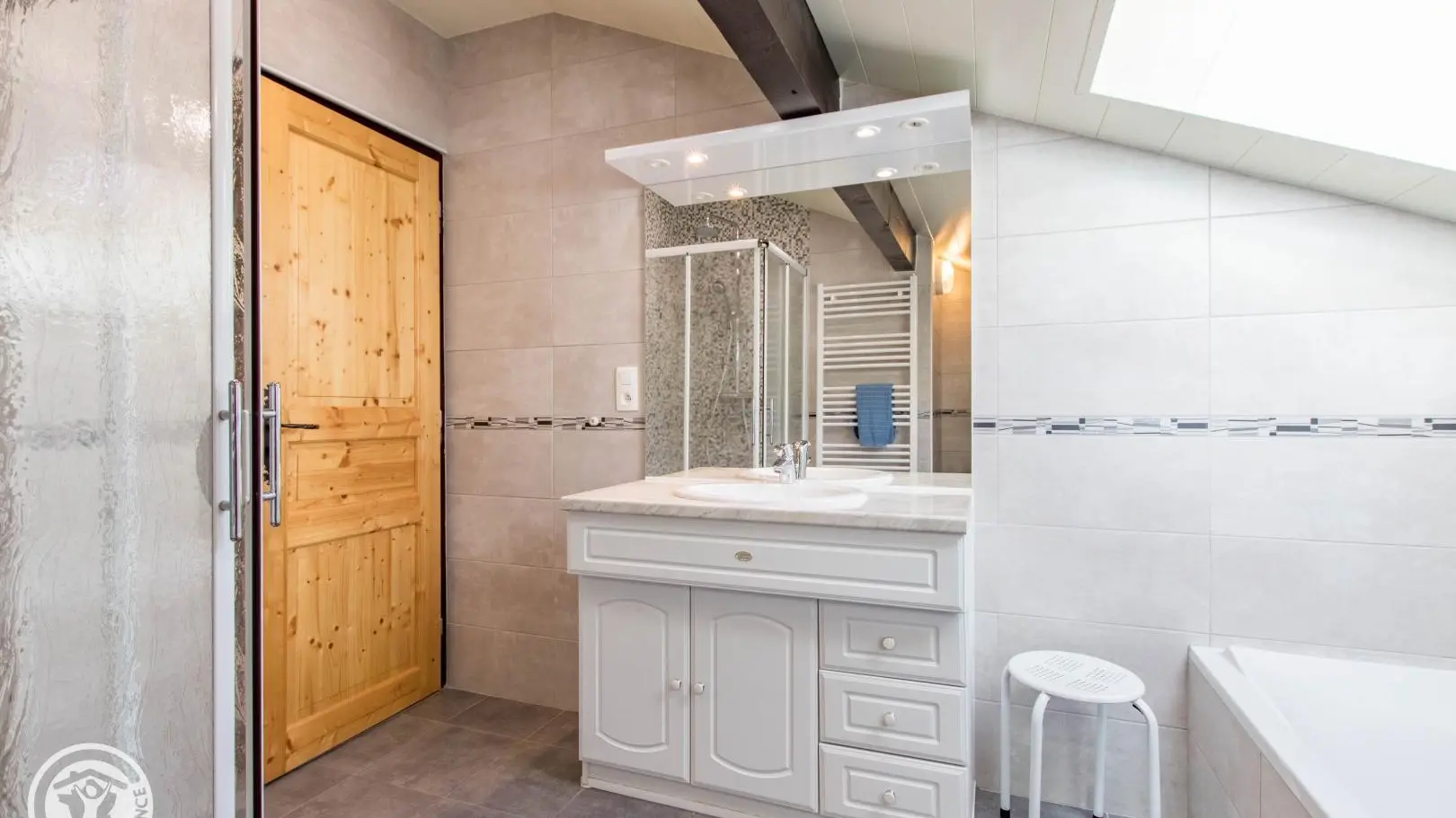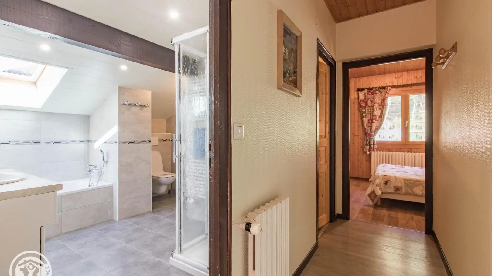 Prachtige omgeving voor deze gîte van 81m² + 15m² zolder op de bovenste verdieping (3de verdieping) van een groot chalet met 5 appartementen. Gemeenschappelijke ingang.