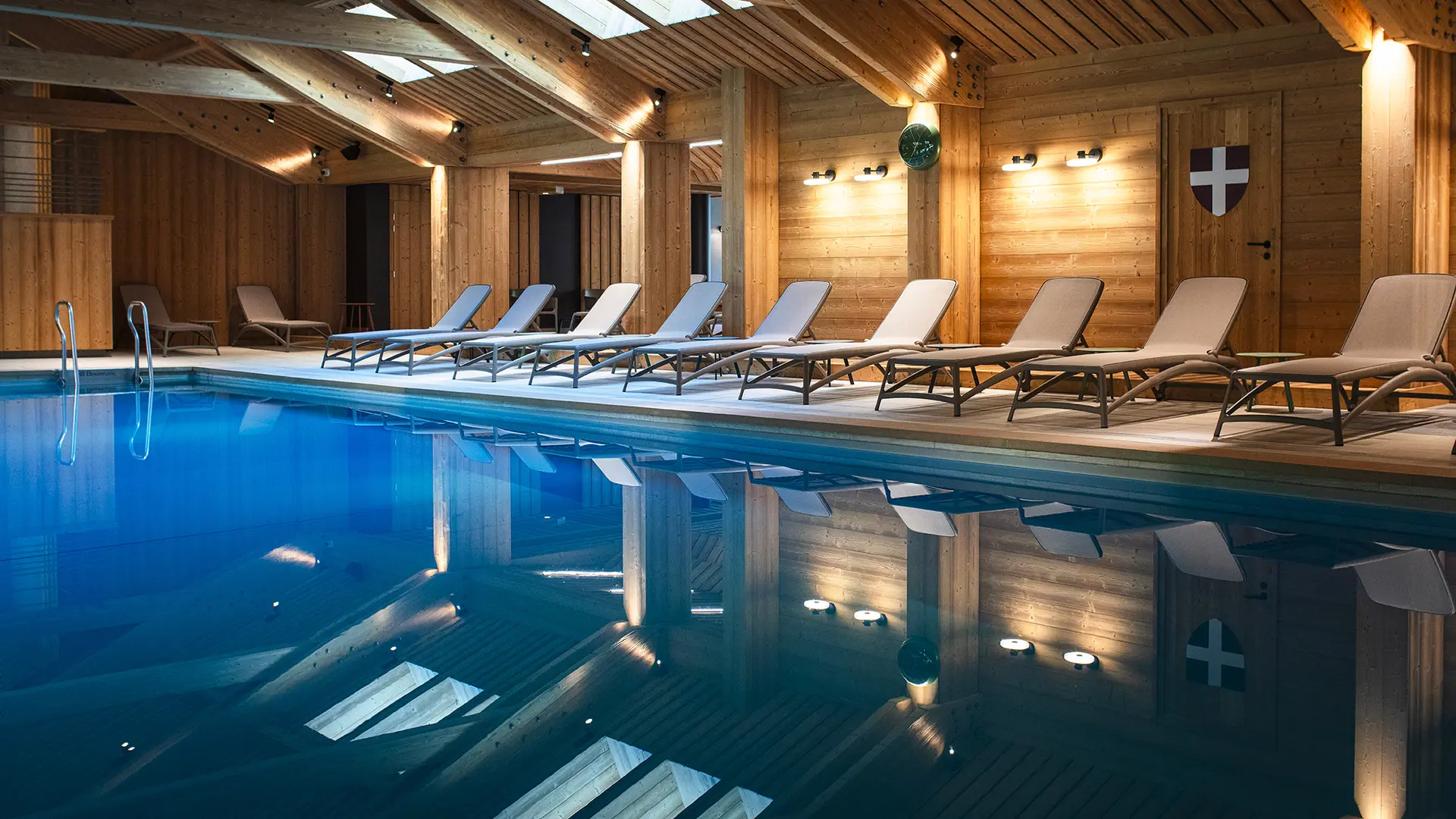Het grote binnenzwembad van 17 m x 8 m, omgeven door brede raampartijen en verwarmd tot 30°C, nodigt het hele jaar door uit tot ontspanning. Daarnaast zorgen een jacuzzi voor 8 personen, een hammam en een sauna met panoramisch uitzicht op het dorp La Clusaz voor een complete zintuiglijke beleving. Een unieke manier om tot rust te komen terwijl u ’s winters geniet van de besneeuwde daken of ’s zomers van de groene alpenweiden.