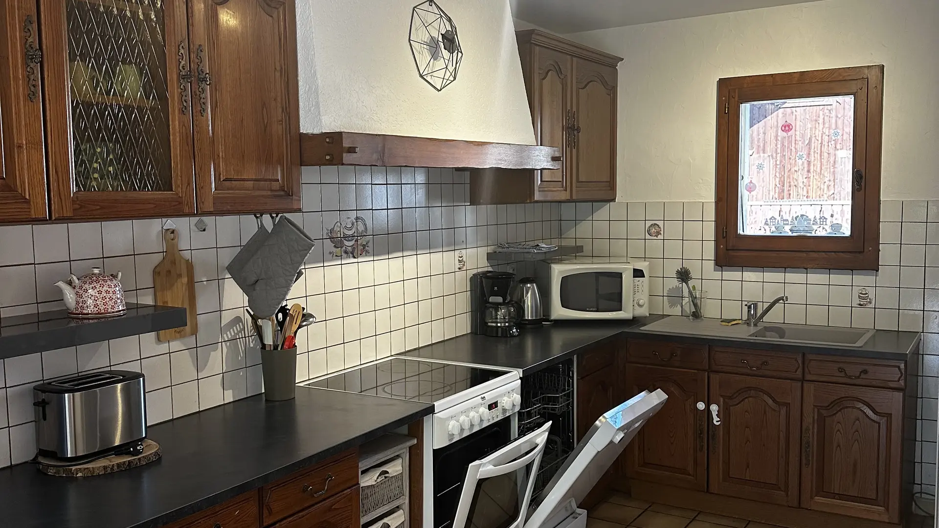 - volledig ingerichte keuken (koelkast, waterkoker, koffiezetapparaat, broodrooster, raclette machine, vaatwasser)