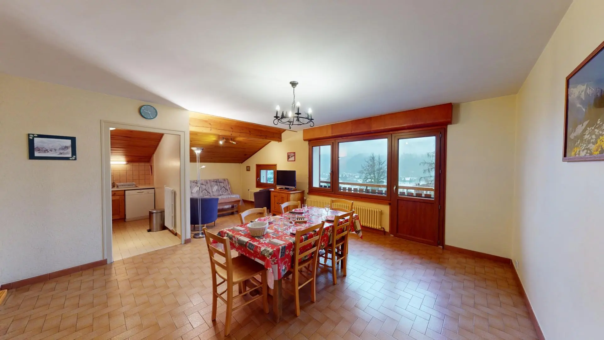 Huis met 4 gîtes, gelegen aan de zuidkant van de Samoëns vallei (Kunst en Geschiedenis dorp). Gîte La Nivéole (66 m2) op de 2e verdieping: ingerichte keuken (multifunctionele oven), woonkamer (slaapbank 130), TV-punt, 2 slaapkamers (2 eenpersoonsbedden 140). Badkamer, wc.
