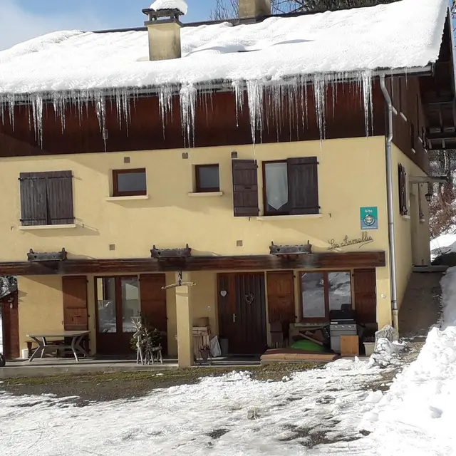 Huis met 3 gîtes, gelegen op de zuidhelling van de Samoëns vallei (Kunst- en Geschiedenisdorp). Op het zuiden met panoramisch uitzicht. Gîte La Nivéole (66 m2) op de 2e verdieping: ingerichte keuken, woonkamer (slaapbank 140), TV, 2 slaapkamers (2 bedden 140). Badkamer, wc. Gemeenschappelijke wasmachine, centrale verwarming, balkon, binnenplaats, gemeenschappelijk terrein, tuinmeubelen. Verblijf 3 weken -10%. Skigebied Samoëns-Grand Massif 1.5 km (vertrek gondel 1.5 km), 5 aaneengesloten skigebieden. Langlaufen 1.4 km. Interne communicatie tussen gîtes mogelijk. Verhuur van lakens.