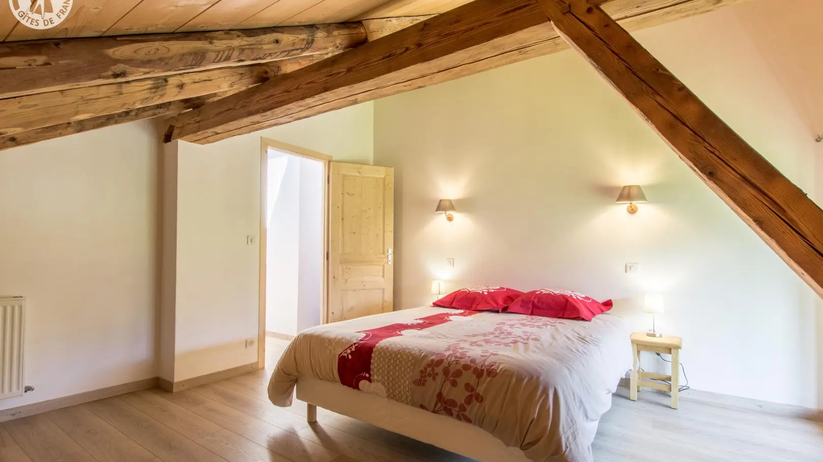 Gîte van 85 m2 op 2 niveaus op de 2e verdieping van een oude gerenoveerde boerderij die ook 3 andere gîtes omvat, evenals de woning van de eigenaren (op de begane grond).