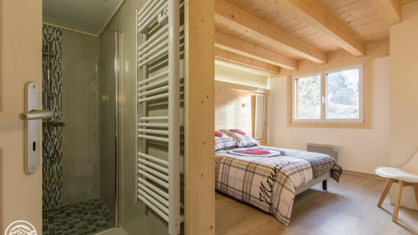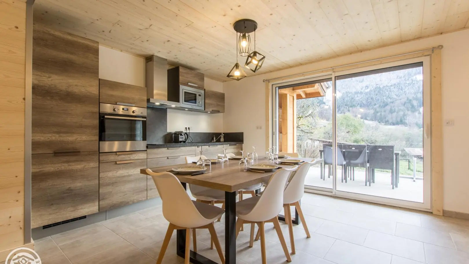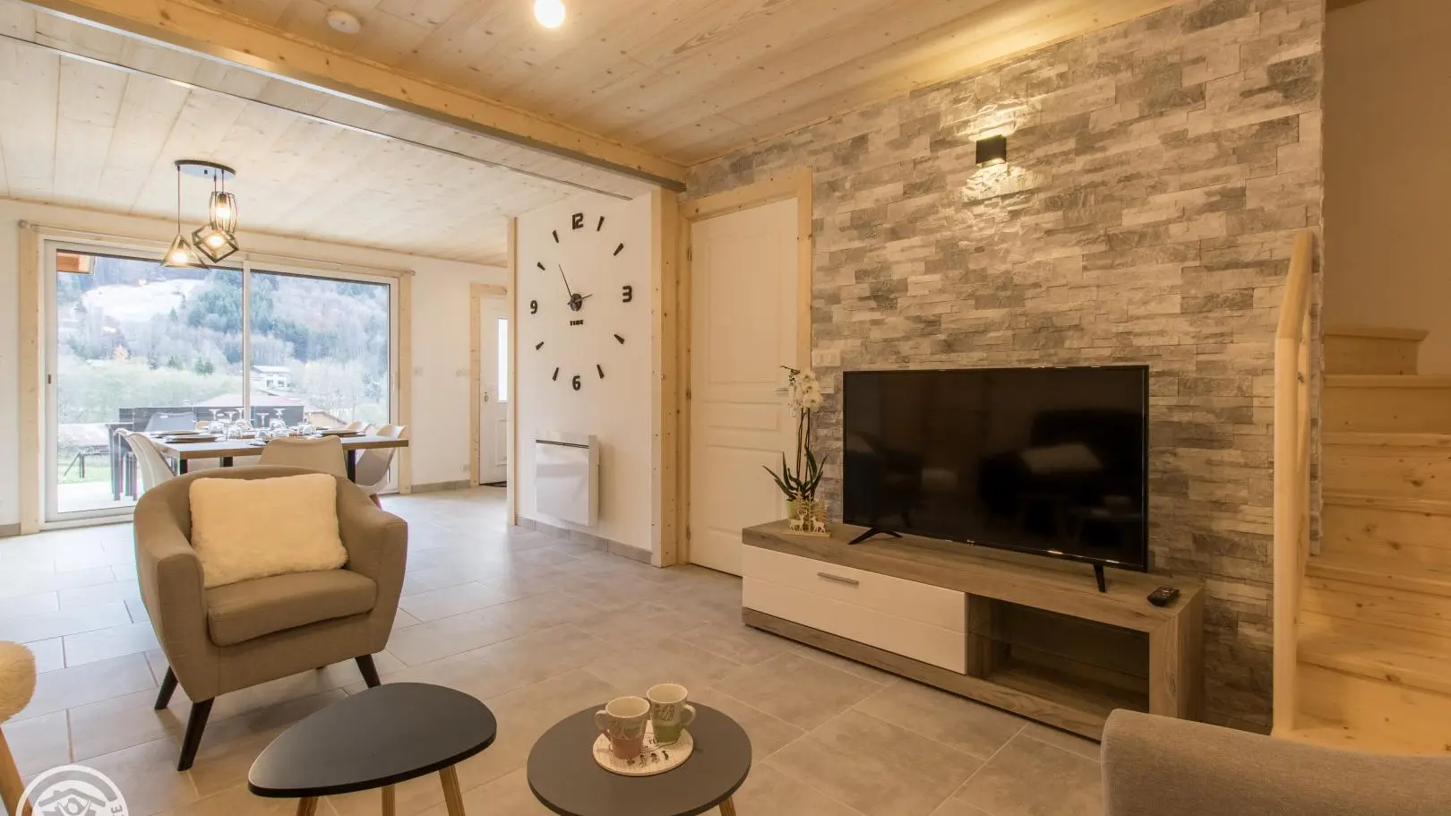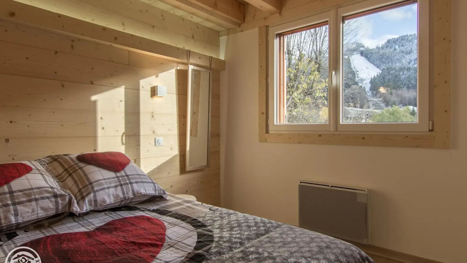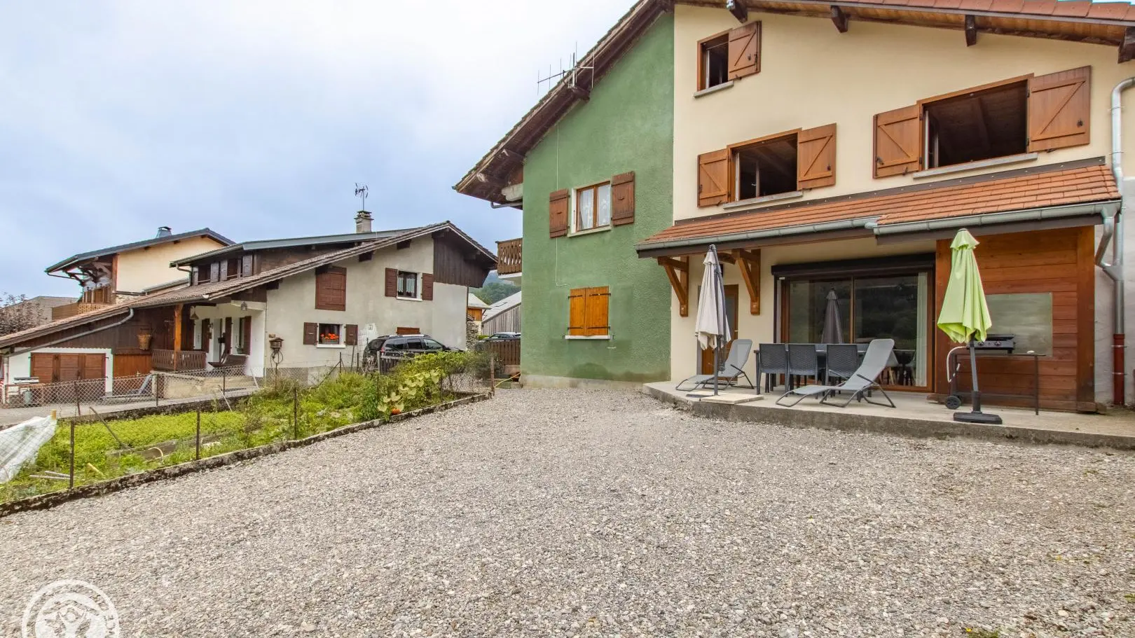 Privé-terras op het zuiden met uitzicht op de bergen (en uitzicht op de skipistes in de winter), tuinmeubelen, ligstoelen, parasol, barbecue. Binnenplaats, privé parkeerplaats.