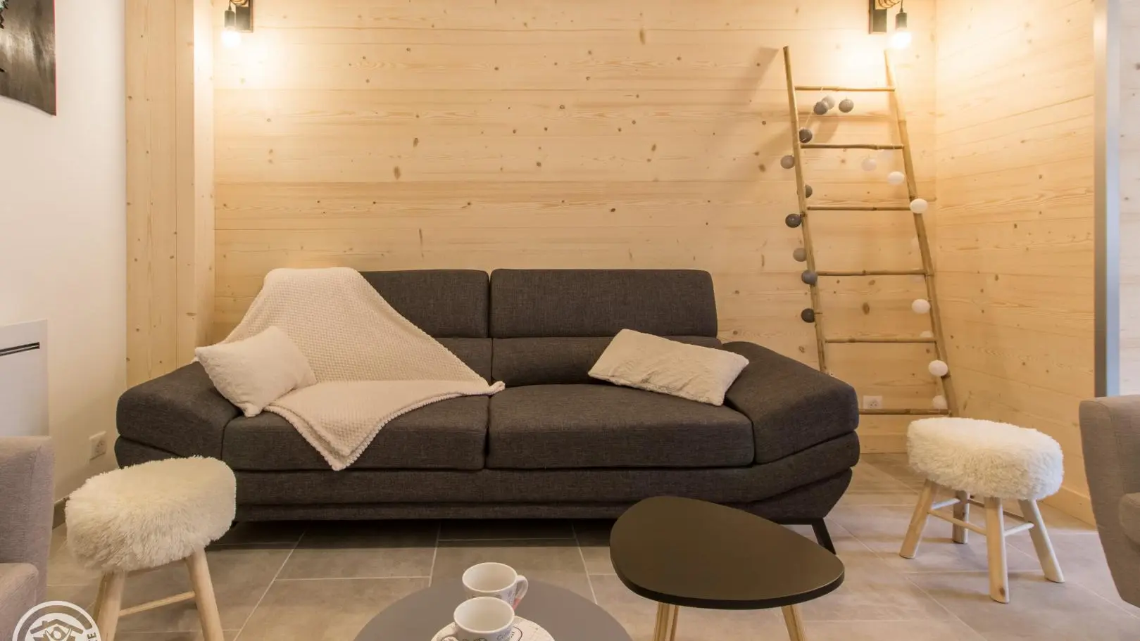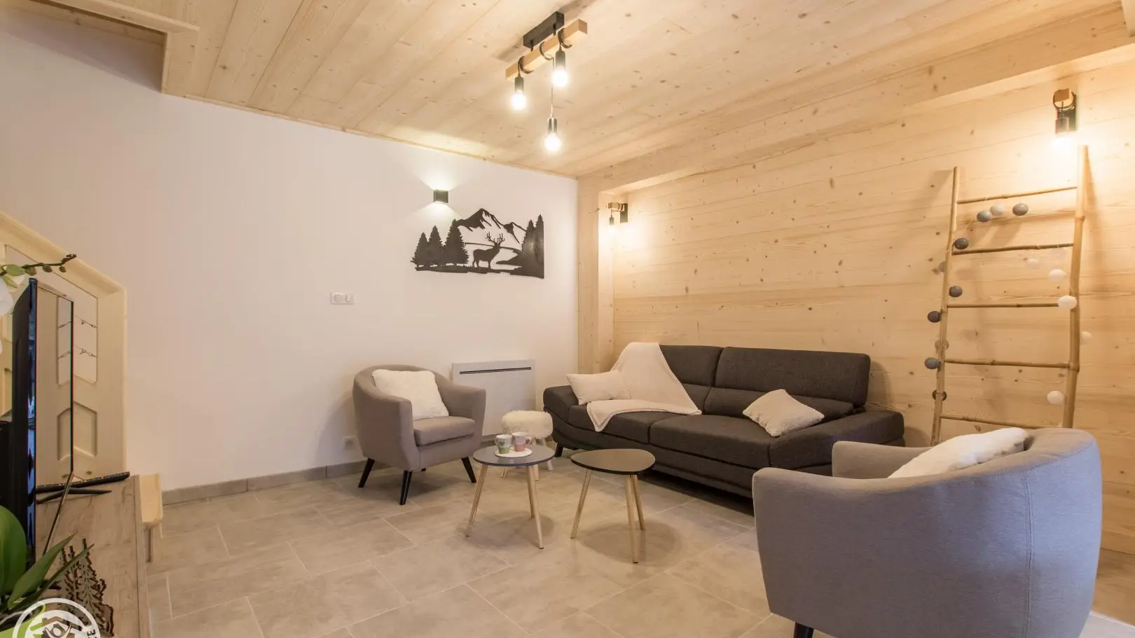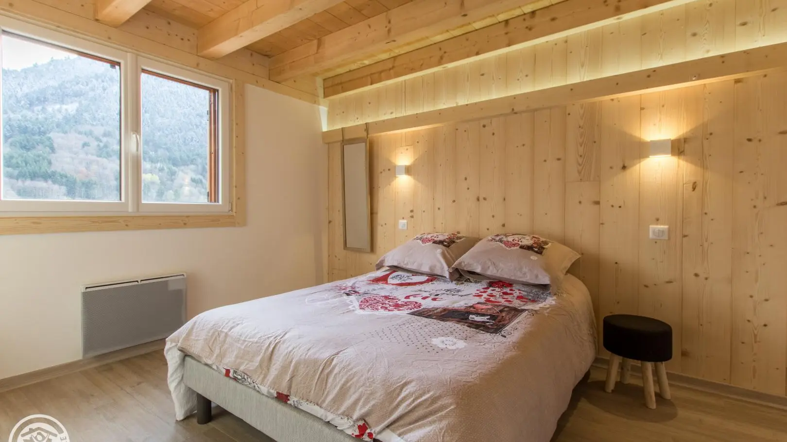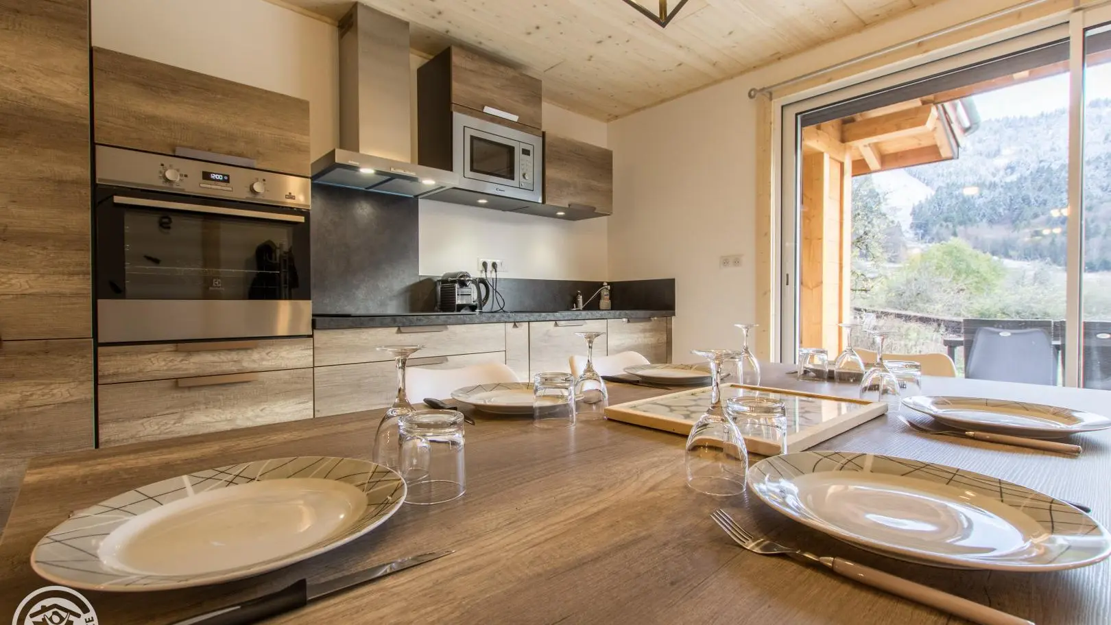 Privé-terras op het zuiden met uitzicht op de bergen (en uitzicht op de skipistes in de winter), tuinmeubelen, ligstoelen, parasol, barbecue. Binnenplaats, privé parkeerplaats.