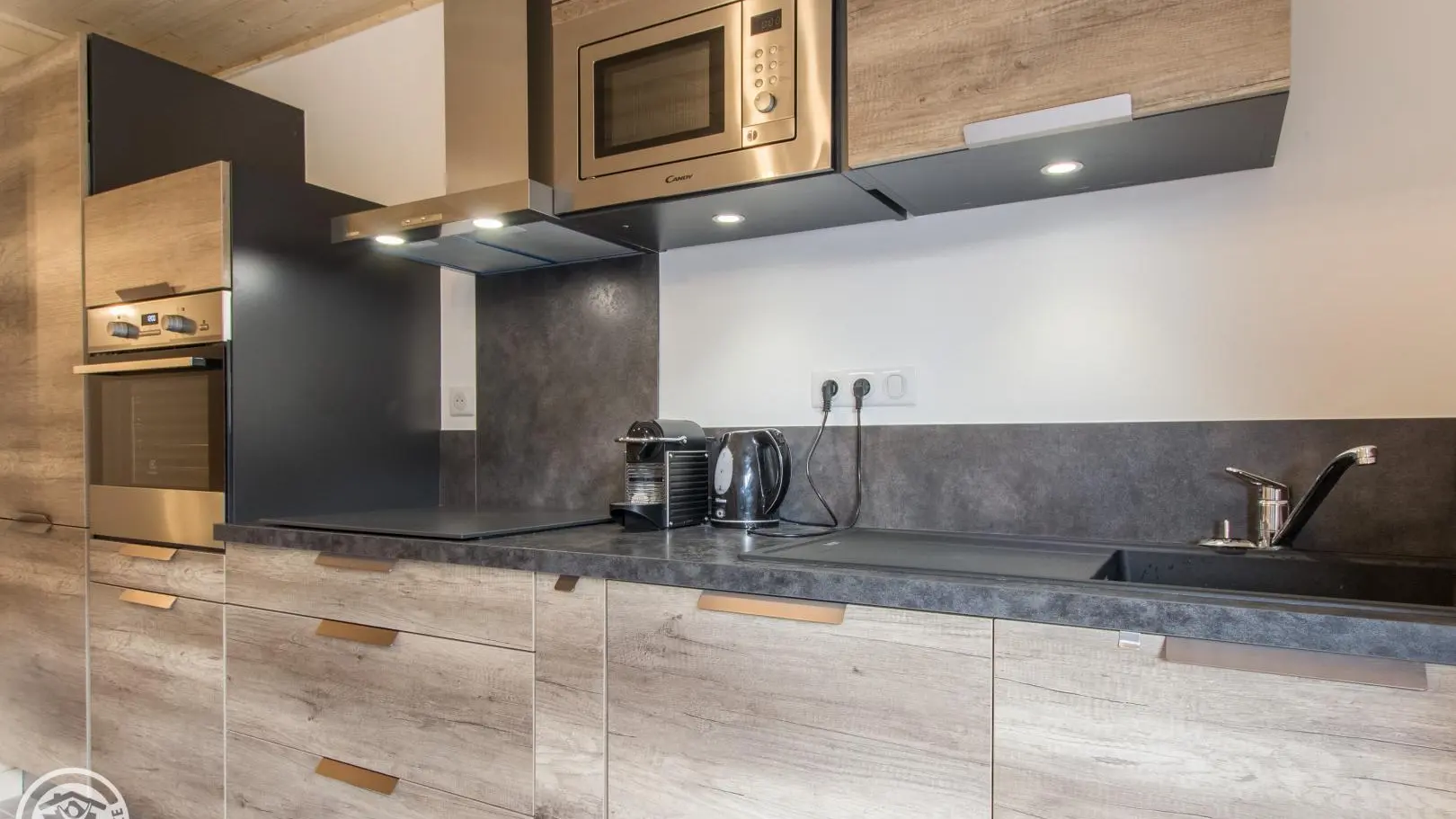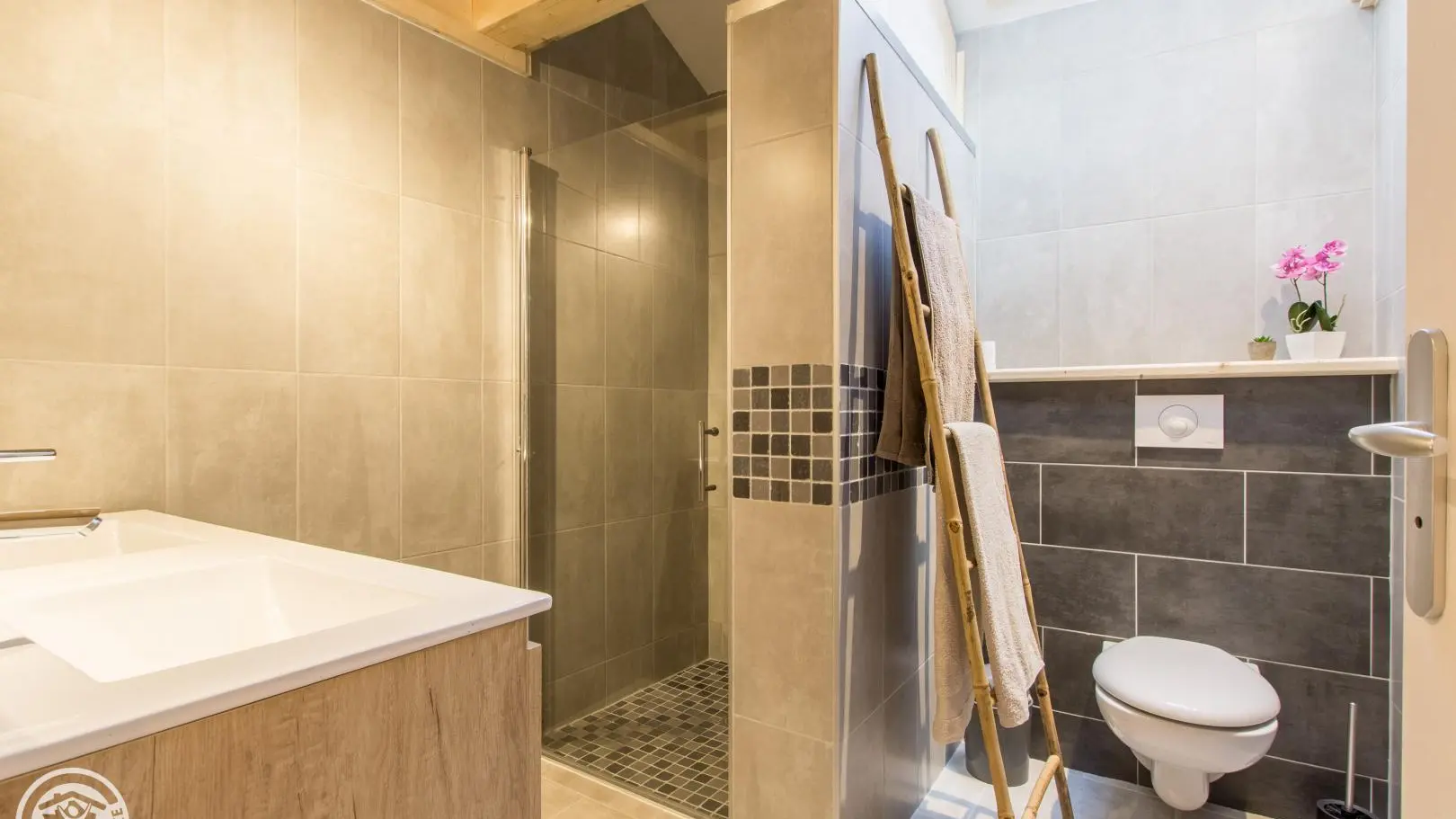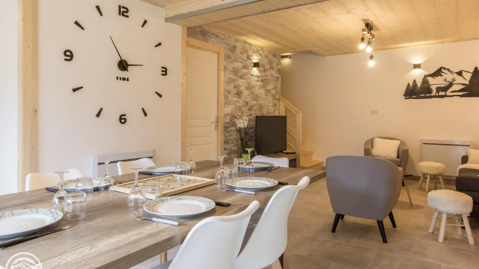 Smaakvol verbouwde halfvrijstaande dorpswoning van 3 verdiepingen van 88m² (+15m² zolderruimte), op het zuiden. Aparte ingang. Begane grond: ingerichte keuken uitgevend op woonkamer (eettafel, bank, fauteuils, televisie 123cm), erker uitgevend op privé-terras (uitzicht op de bergen). Wasruimte met wasmachine. Aparte WC met wastafel.