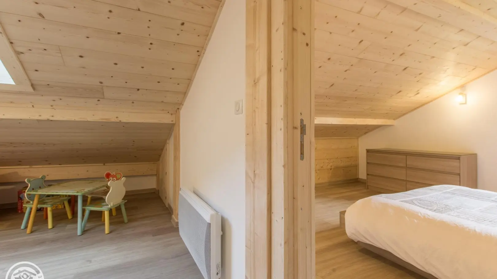 2e verdieping: mezzanine met kinderspeelhoek. Slaapkamer 3 (1 bed 140x190cm).