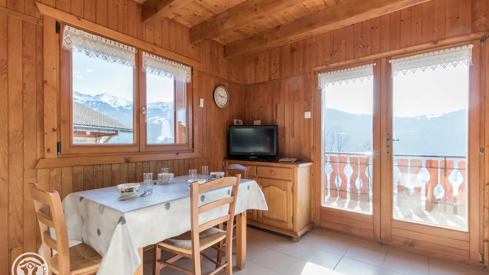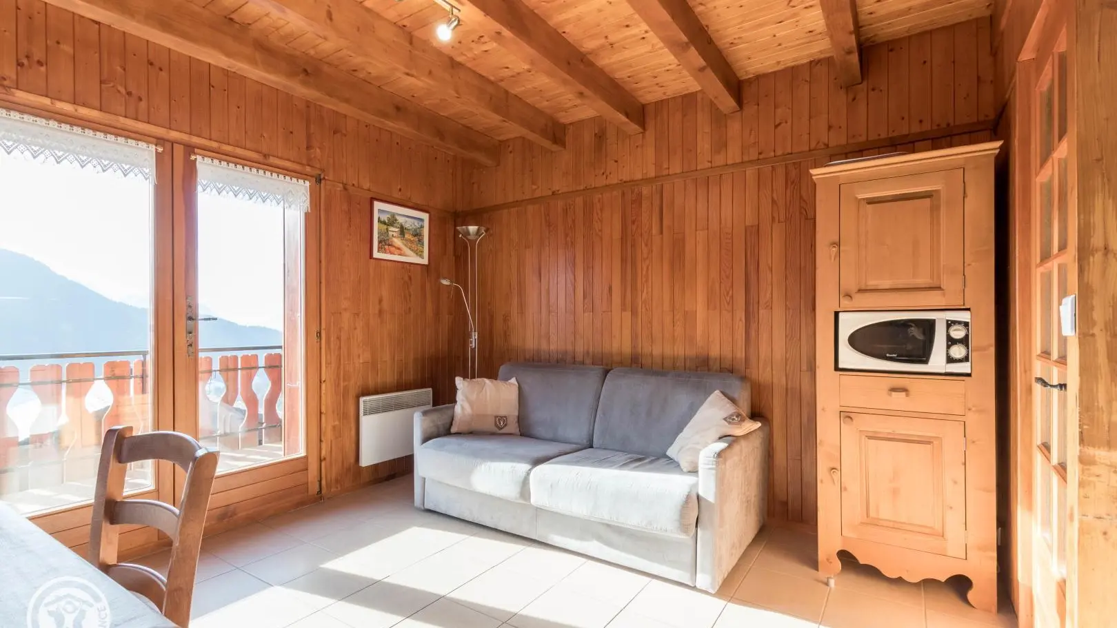 Panoramische ligging, vlakbij de Dent d'Oche. Chalet bestaande uit 2 aangrenzende gîtes van 35m2 + 17 m2 zolderruimte. Verhoogde begane grond: kitchenette in de woonkamer (slaapbank voor 2 personen). 2 slaapkamers boven (1 bed van 140. 2 bedden van 90). Doucheruimte, wc. Elektrische verwarming, balkon,...