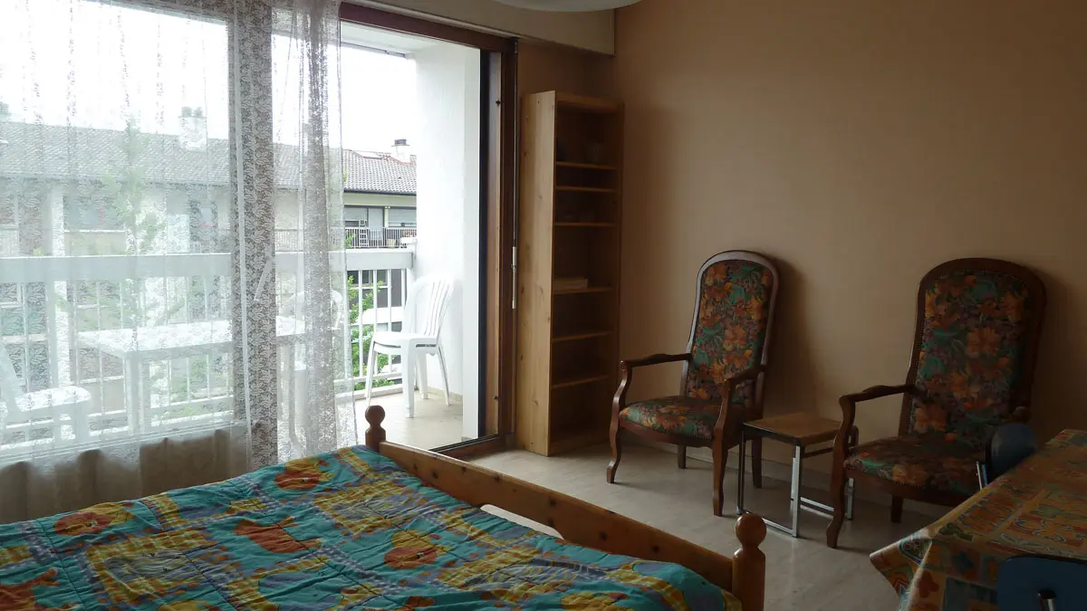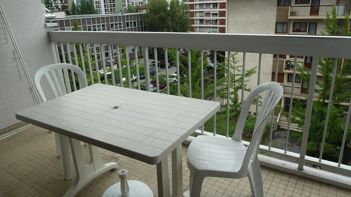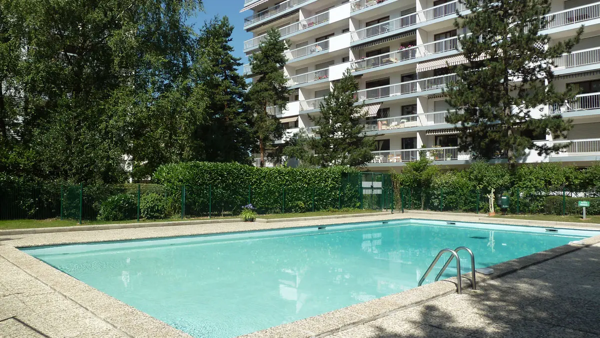Luxe flatgebouw met intercom, parkeerplaats en zwembad. Balkon met tuinmeubilair. Fietsenlokaal. Dichtbij het centrum en de winkels (Casino en Galeries Lafayettes). Vlakbij het meer.