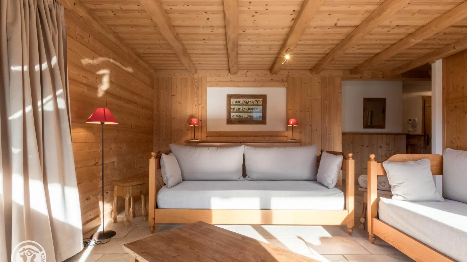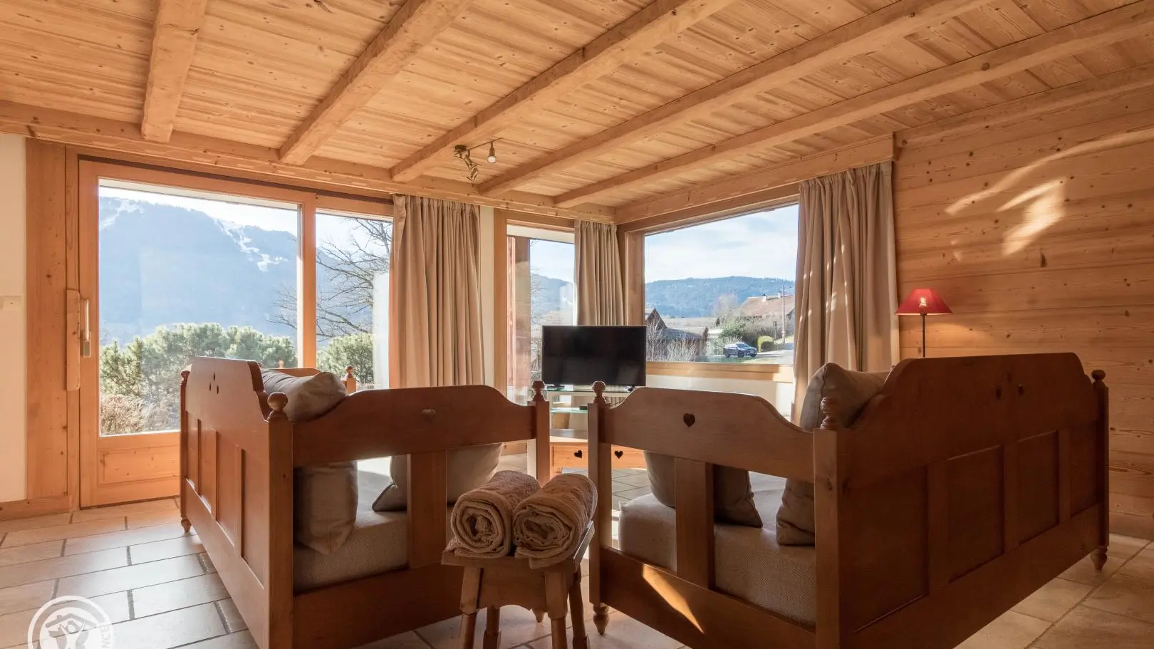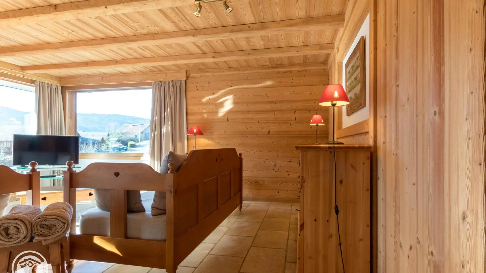 Op de hellingen van de Col de Joux Plane, op een zuidhelling met uitzicht op de toppen van het Grand Massif, bestaat dit prachtig bewerkte chalet van steen en hout uit 4 gîtes.