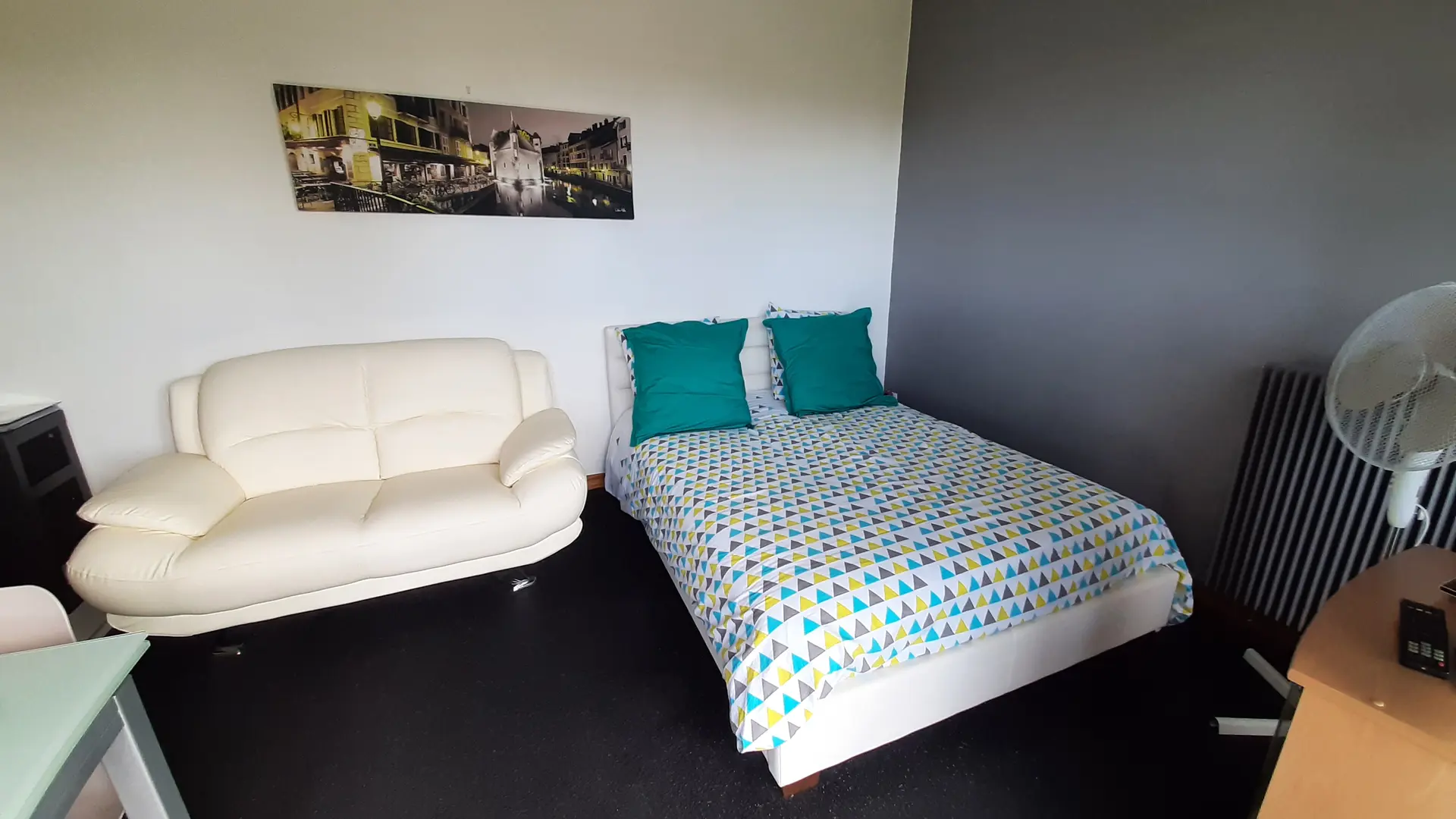 Zonovergoten huurappartement, dat uitkijkt op het groen. Middenin het centrum, vlakbij de oude stad en het station. Op 900 m van het meer. Kalme, groene omgeving. Groot balkon van 9 m². 2 fietsen beschikbaar, WiFi, parking.