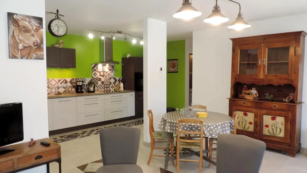 Ce gîte, prévu pour 2 à 4 personnes, est situé au rez-de-chaussée d'une ferme entièrement rénovée avec goût et confort dans un hameau très calme au départ de nombreuses randonnées et de lieux de visites.
