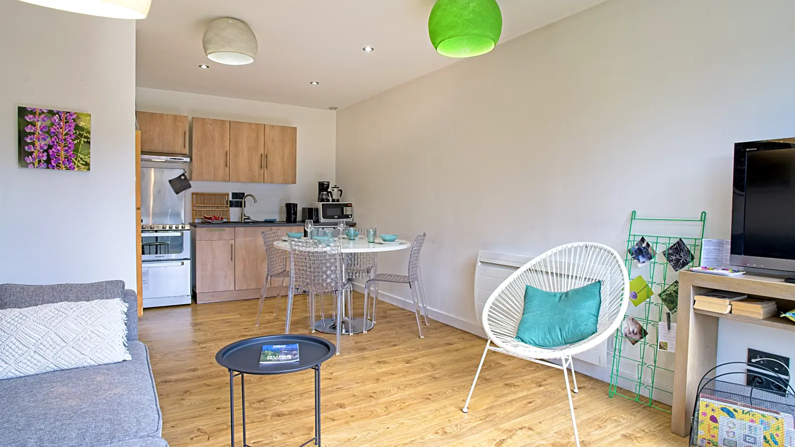 1 séjour / cuisine - 1 chambre - 1 salle de douche - 1 wc séparé - 1 terrasse