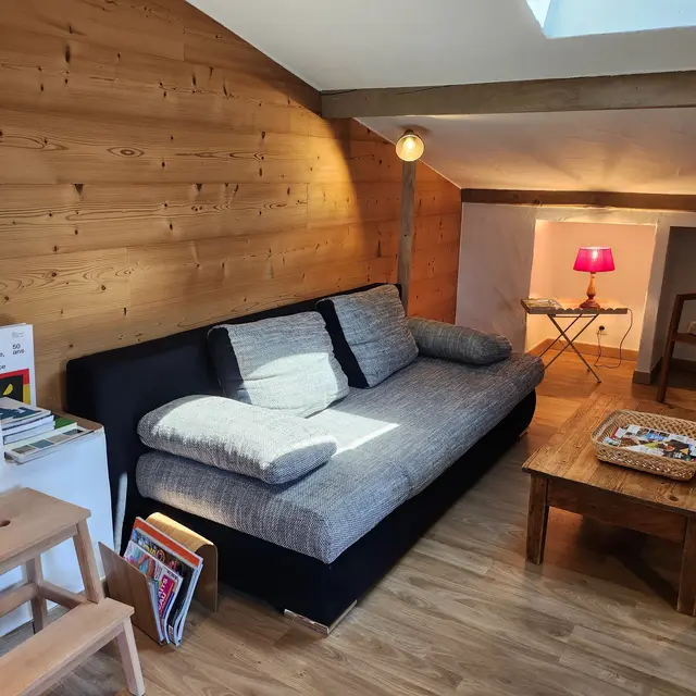 Appartement meublé face au Mont-Blanc pour 5 personnes, avec 2 chambres, un balcon et un jardin.