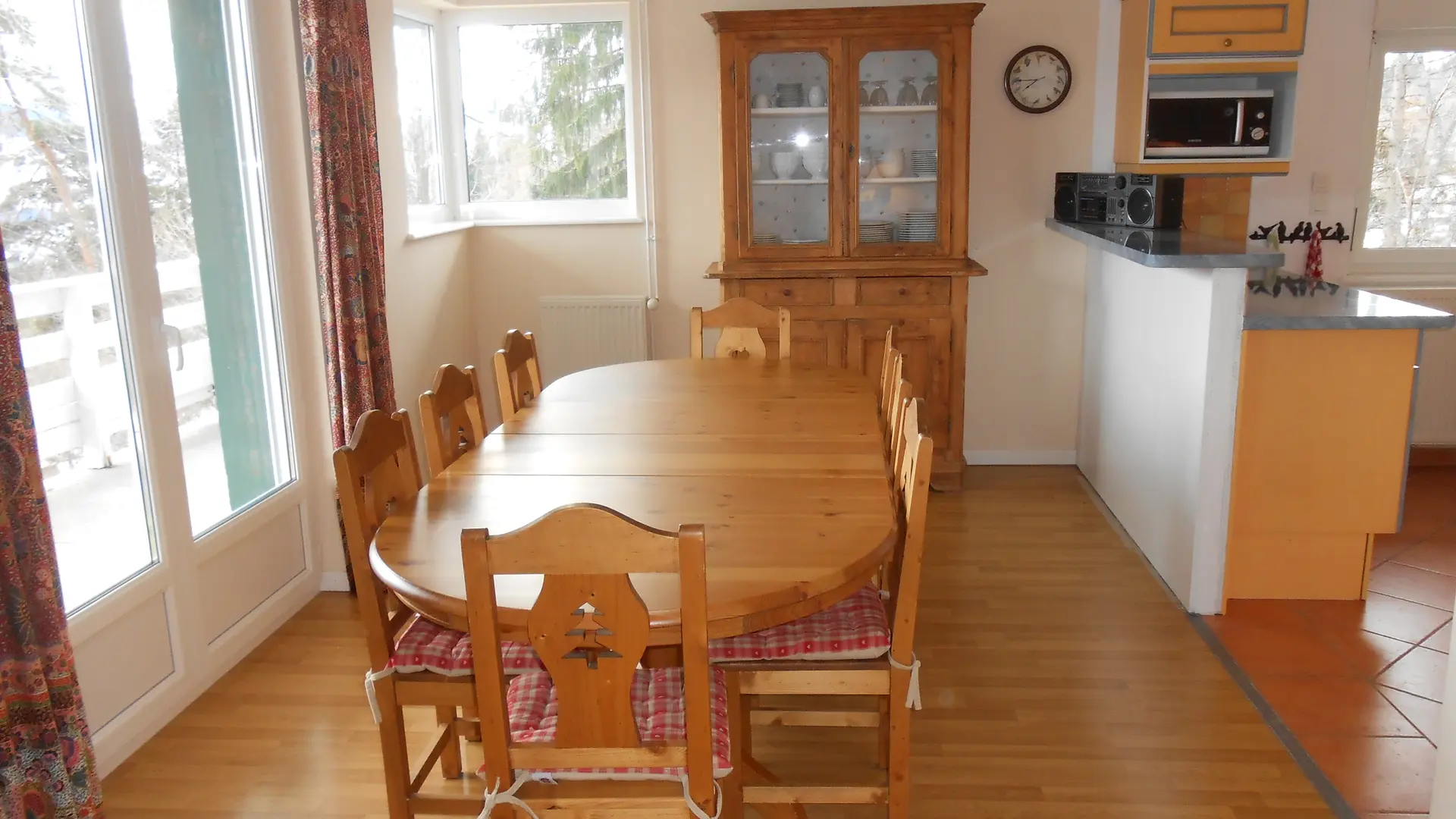 L'appartement se situe au Plateau d'Assy, tout proche de Plaine-Joux et se compose d'un vaste séjour avec cuisine équipée, baie vitrée exposée sud, de 3 chambres : deux avec chacune un lit double et une avec 2 lits simples tiroirs et 1 lit superposé (2 couchages), et de 2 salles de bain - l'une avec baignoire, la seconde avec douche. L'appartement bénéficie de 2 vastes balcons chacun de 20 m², l'un est exposé sud avec une vue exceptionnelle sur le Massif du Mont Blanc, le second exposé nord avec vue sur la Chaîne des Fiz.