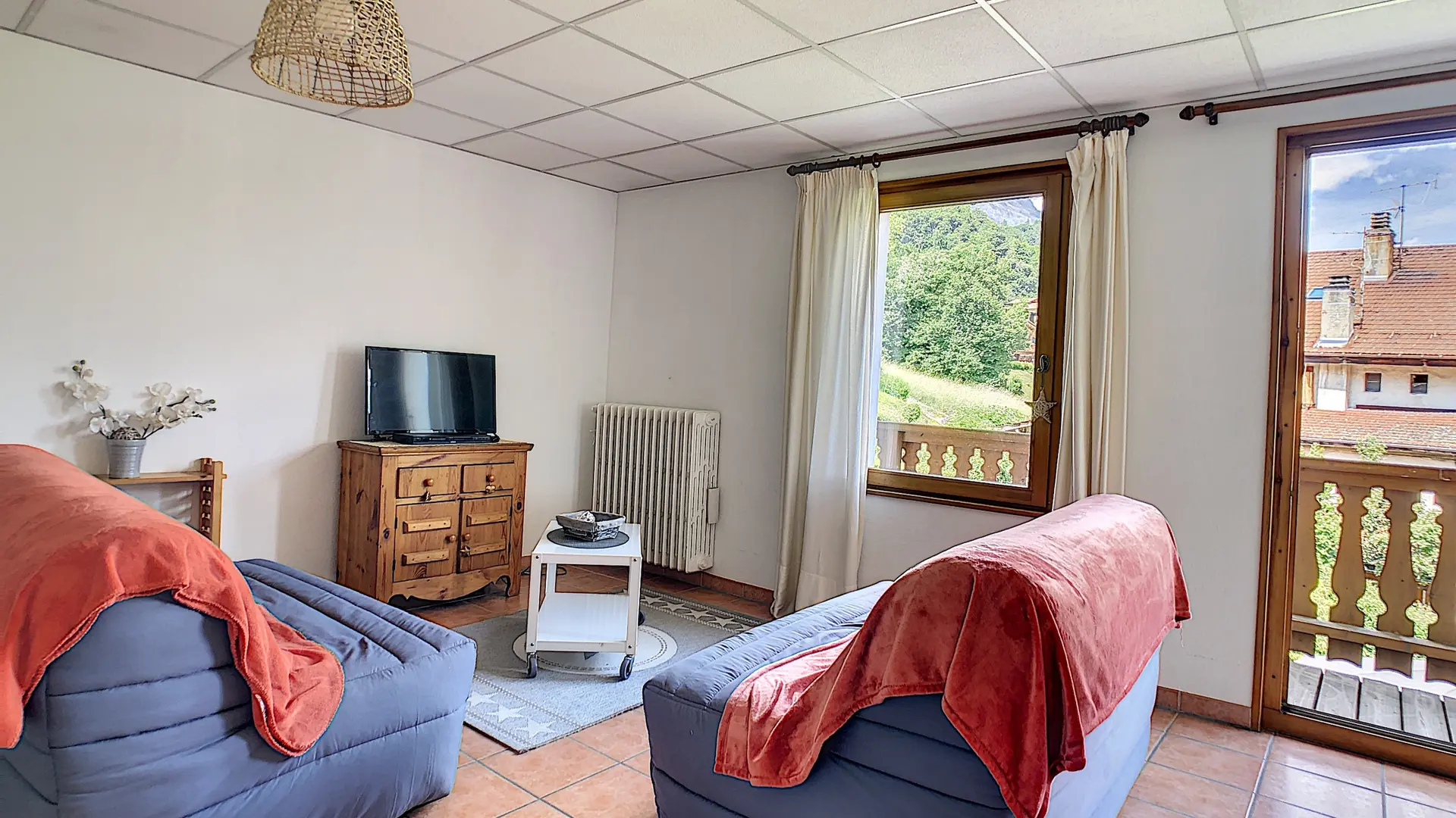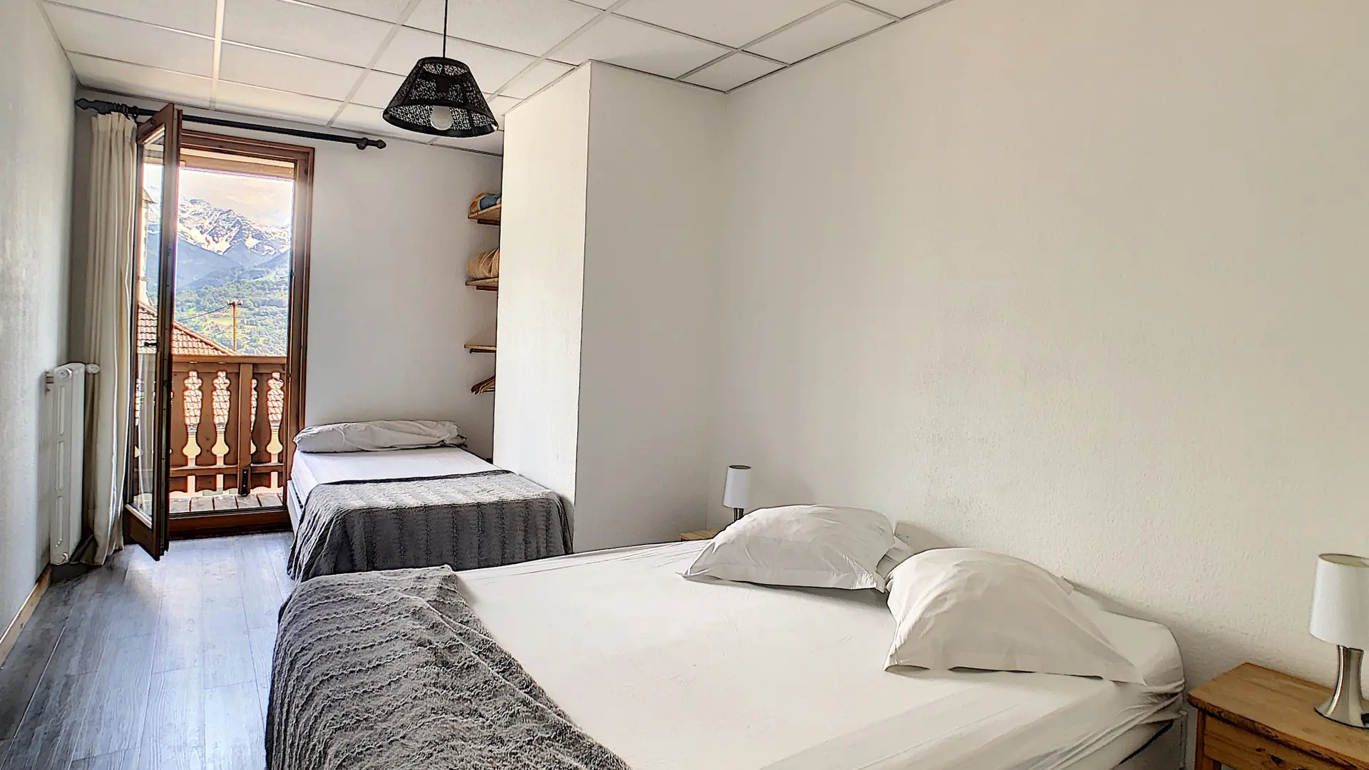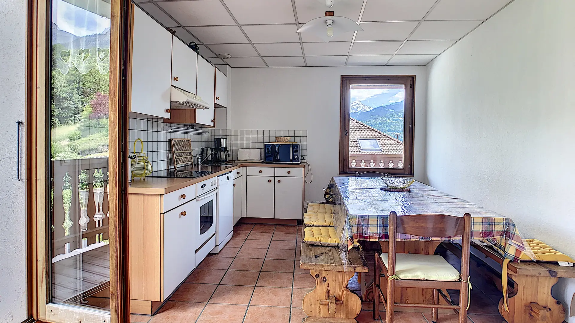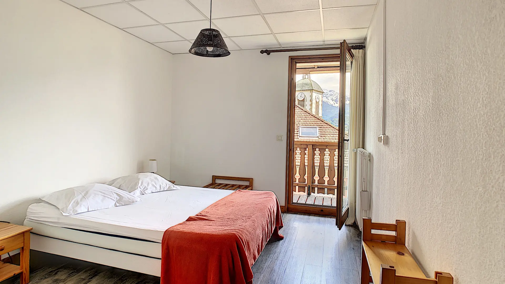 Cet appartement vous offrira une vue sur le Mont-Blanc et les montagnes alentours avec son accès au balcon.