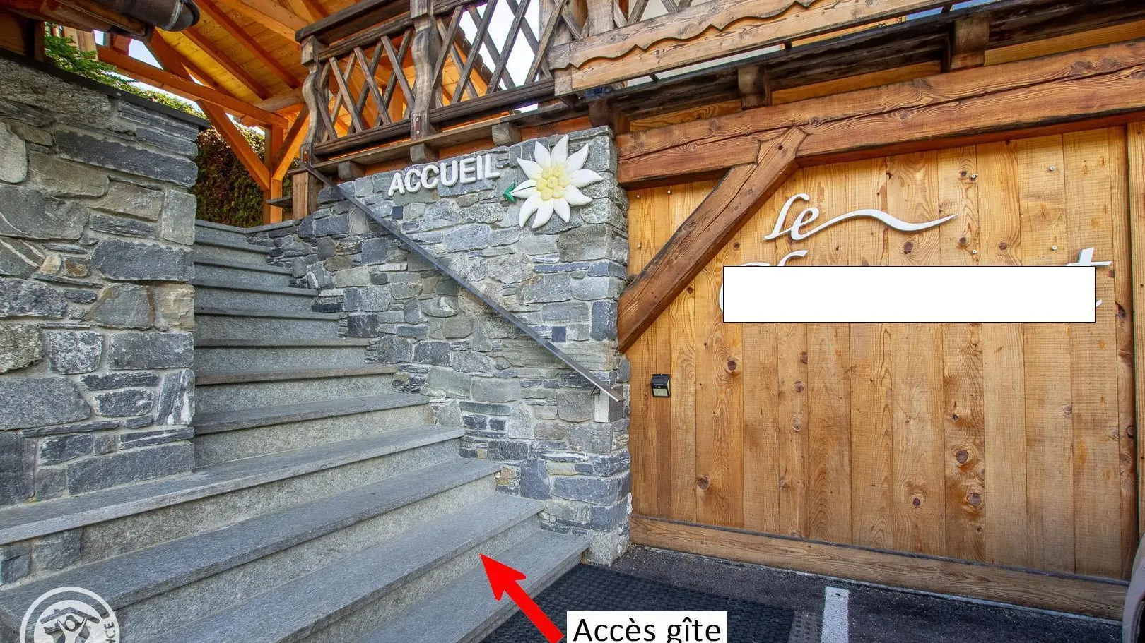 Le gîte (qui dispose de sa propre entrée indépendante), est situé au 1er étage en partant du parking (place privative, accès au gîte par escalier extérieur).