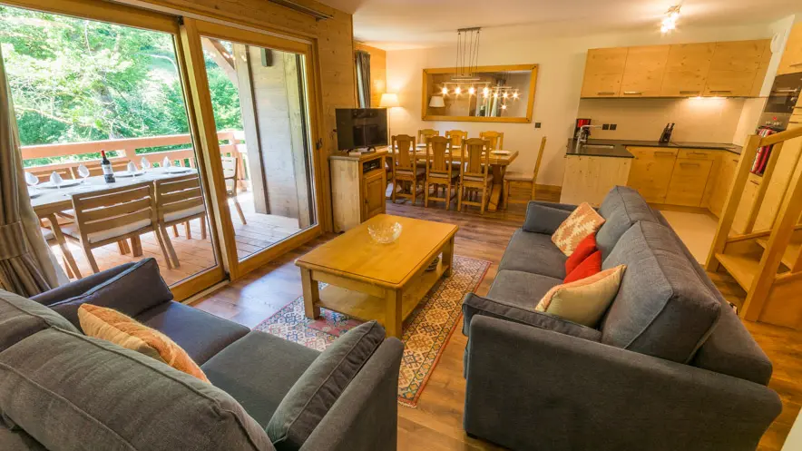 Situé dans la résidence exclusive Clos Honoraz, skis aux pieds à Morillon, l’appartement CH8 est un élégant duplex de 104 m² pouvant accueillir jusqu’à 10 personnes. Il dispose de 4 chambres, 3 salles de bain et d’un intérieur raffiné mêlant design contemporain et matériaux traditionnels, avec mobilier sur mesure et linge haut de gamme.