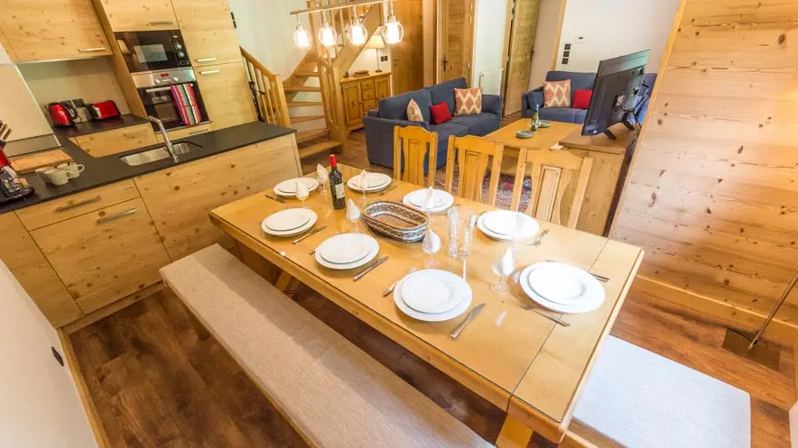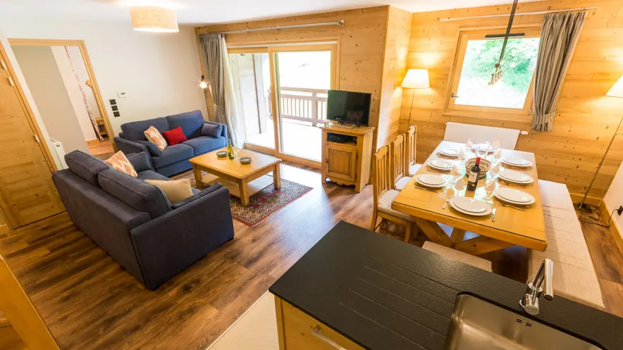 Deux grands balcons exposés plein sud offrent de superbes vues sur les pistes, les chalets et la montagne. L’appartement comprend un séjour confortable avec TV connectée et Blu-ray, le Wi-Fi, ainsi qu’un accès à un jardin commun. Il bénéficie également d’un garage privé, d’un parking extérieur, et d’un casier à skis avec chauffe-chaussures.
