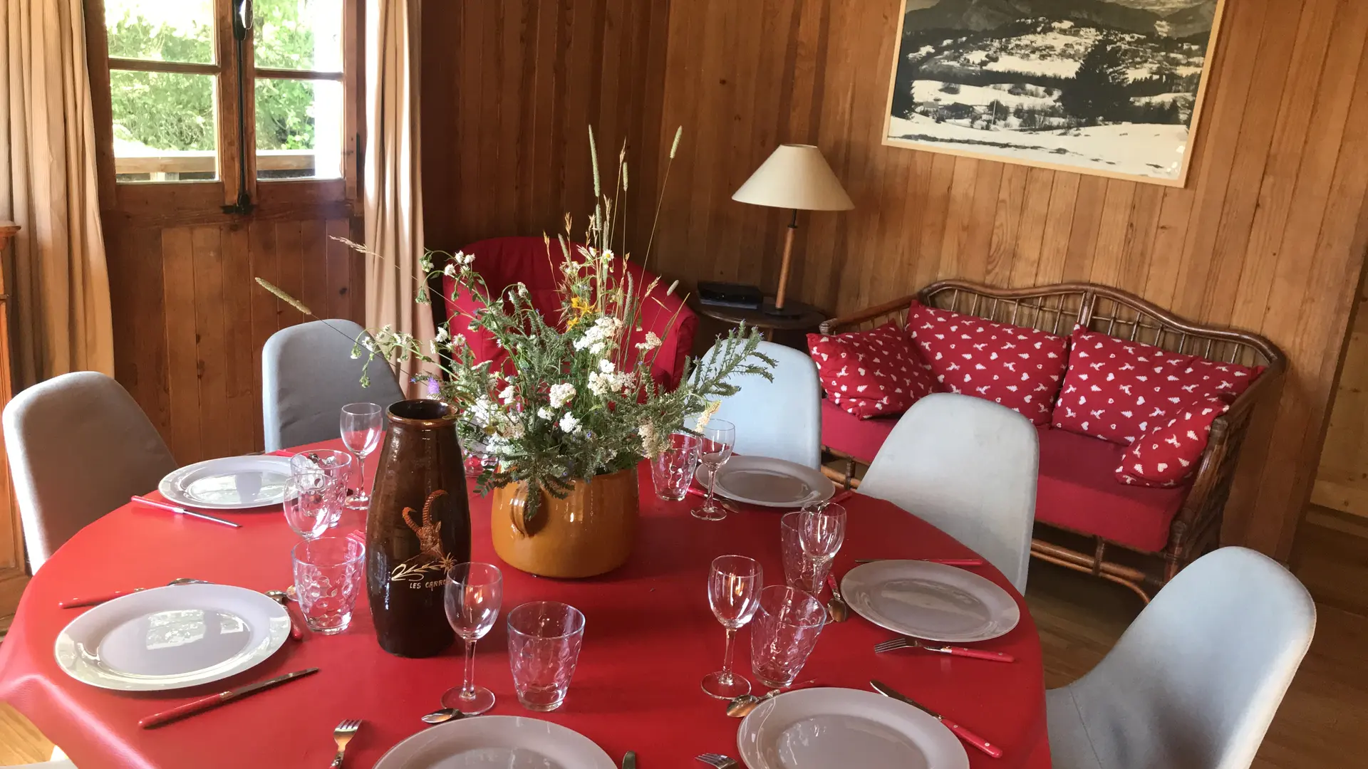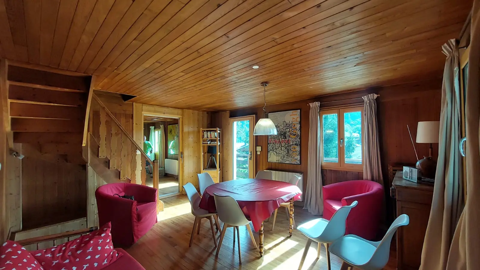 Location saisonnière, hiver comme été, appartement de 80 m2, situé dans un chalet traditionnel en bois sur 3 niveaux.