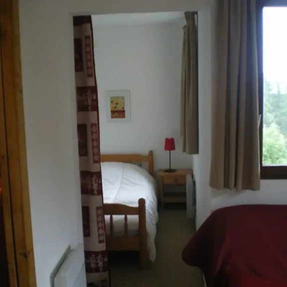 Il dispose d'une entrée avec rangements et coin montagne (lits superposés), d'un séjour avec canapé-lit, d'une chambre avec lit double, d'une kitchenette équipée avec lave-vaisselle 6 couverts, d'une salle de bains avec douche. Balcon avec mobilier de jardin. Grand parc autour de la résidence.