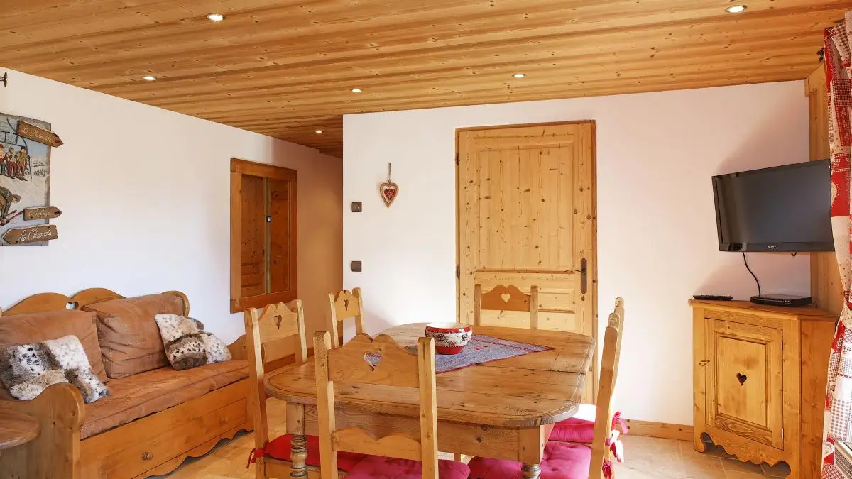 Face au Mont-Blanc et à 4km du domaine skiable de Cordon, gîte chaleureux de 47m2 aménagé dans une ambiance bois et montagne au rez-de jardin du chalet des propriétaires. Accès indépendant de plain pied. Hall d'entrée avec rangements, cuisine intégrée ouverte sur séjour (canapé), Chambre 1 (1 lit 160), Chambre 2 (2 lits 90 dont 1 superposé), salle d'eau (douche italienne, WC). Terrasse bois avec mobilier, barbecue et jardin face au Mt-Blanc. Les draps et le linge de toilette sont fournis et les lits sont faits à votre arrivée. Chauffage au sol. Ski à cordon à 4km, Combloux à 7km, Megève à 8km, Chamonix à 40 minutes. Nombreuses randos à proximité en été, départ randos raquette en hiver. En hiver, navette gratuite à 160m, pour Cordon (domaine skiable), Thermes St-Gervais à 14km.