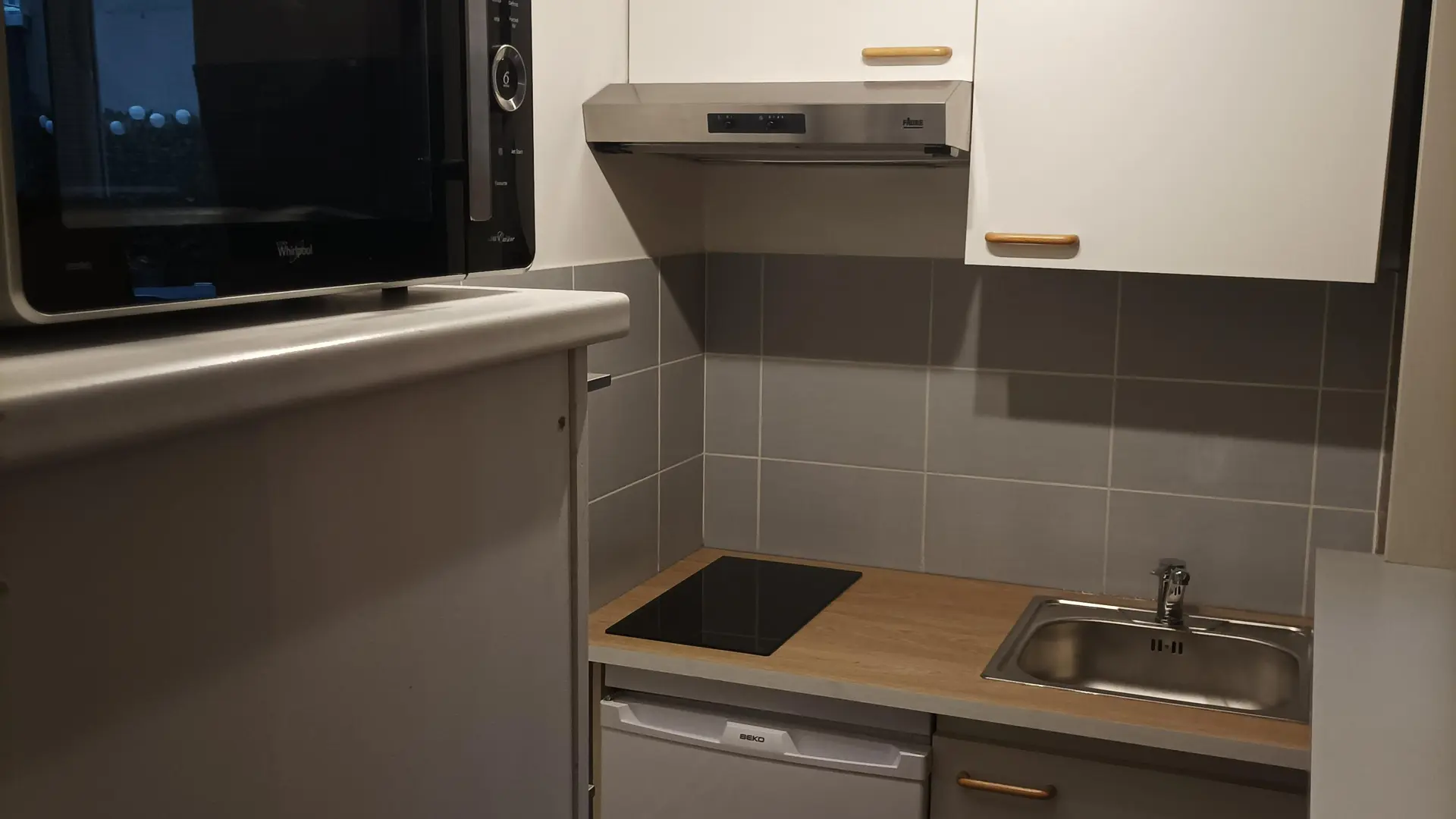 Ce F2 de 28m2 pour 4 personnes est situé au 1er étage d'un immeuble au centre ville.