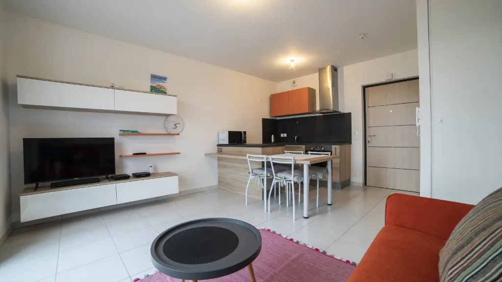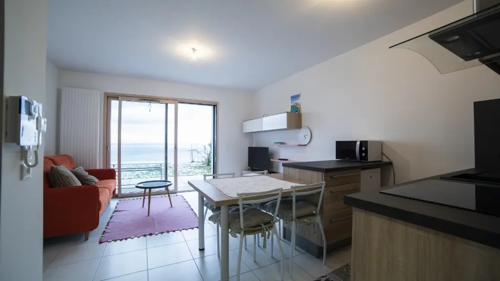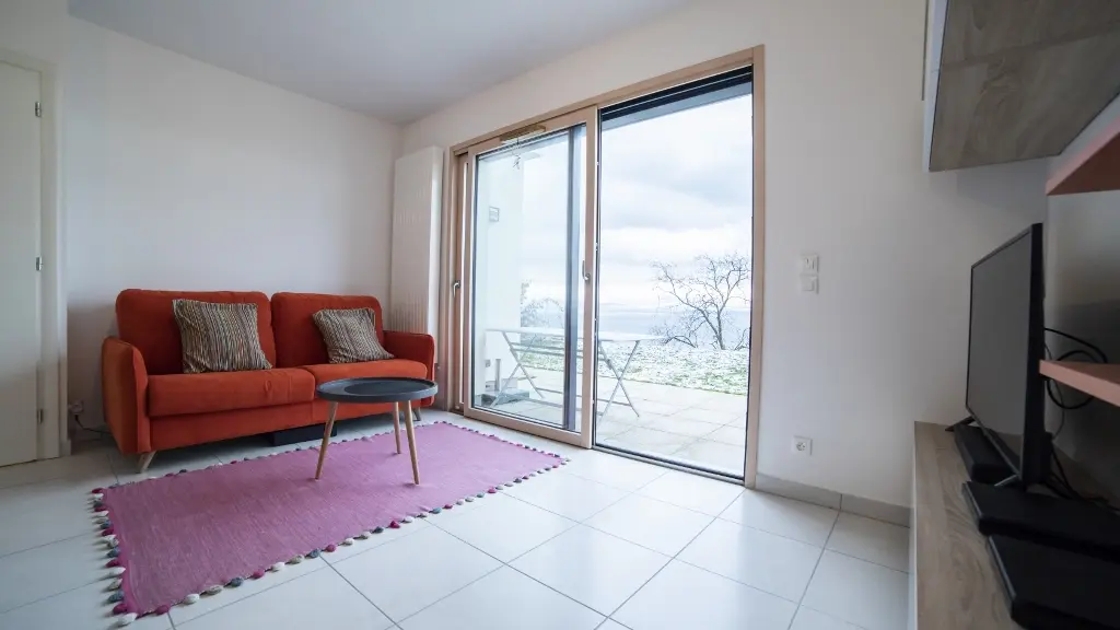 Ce F2 de 40 m2 pour 2 personnes, situé sur les hauteurs d'Evian offre une belle vue sur le lac. Proche du centre-ville, la location est équipée d'une cuisine ouverte sur un séjour-salon, une chambre grand lit, une salle de bain avec baignoire-douche, wc.