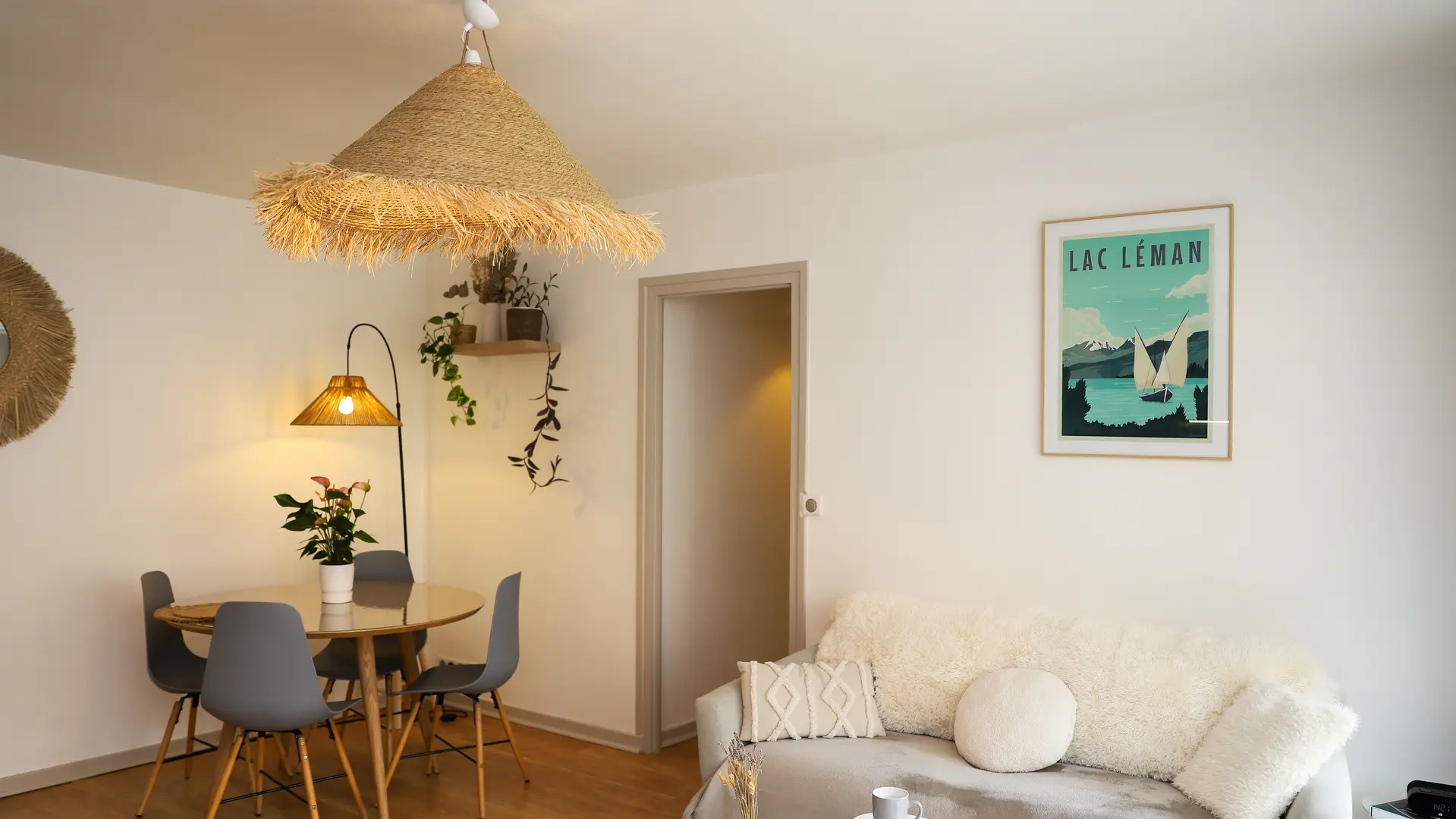 Ce F2 de 47m2, situé au 3ème étage d'une résidence proche des Thermes et des commerces d'Evian propose : une cuisine ouverte sur une salle à manger-salon, une chambre grand lit, une salle d'eau avec douche, Wc indépendant.
