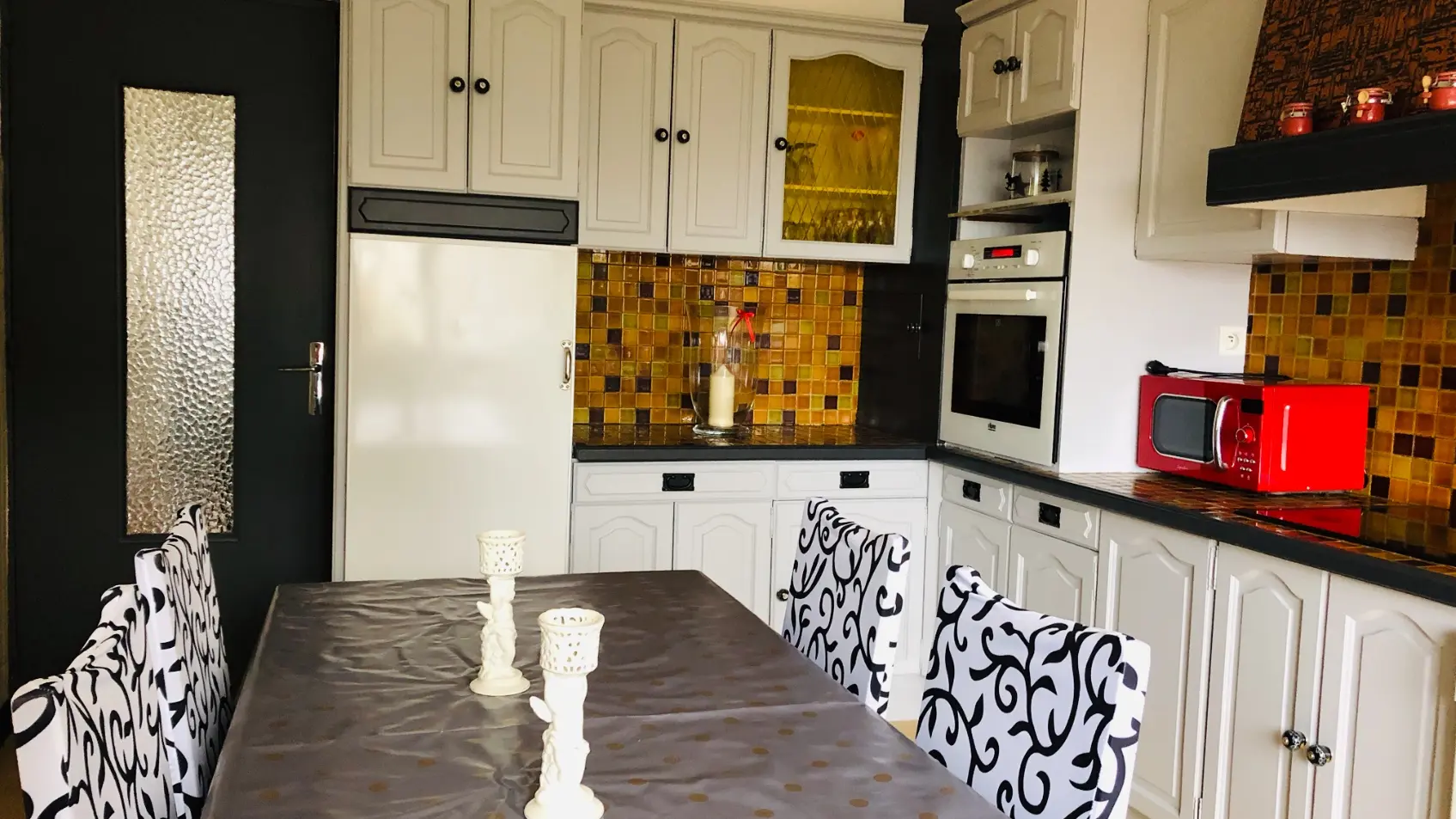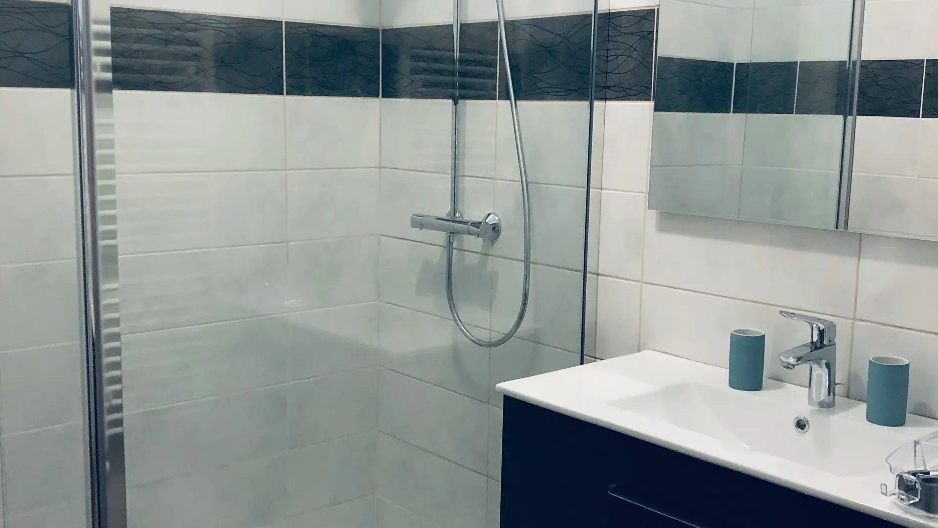 Ce F4 de 89 m2 (5 pers) situé à 50 m de la piscine et à 800 m des Thermes et du débarcadère propose : une cuisine, salle à manger avec convertible 2 personnes, une chambre grand lit, une chambre lits jumeaux, salle d'eau avec douche italienne, wc séparé.