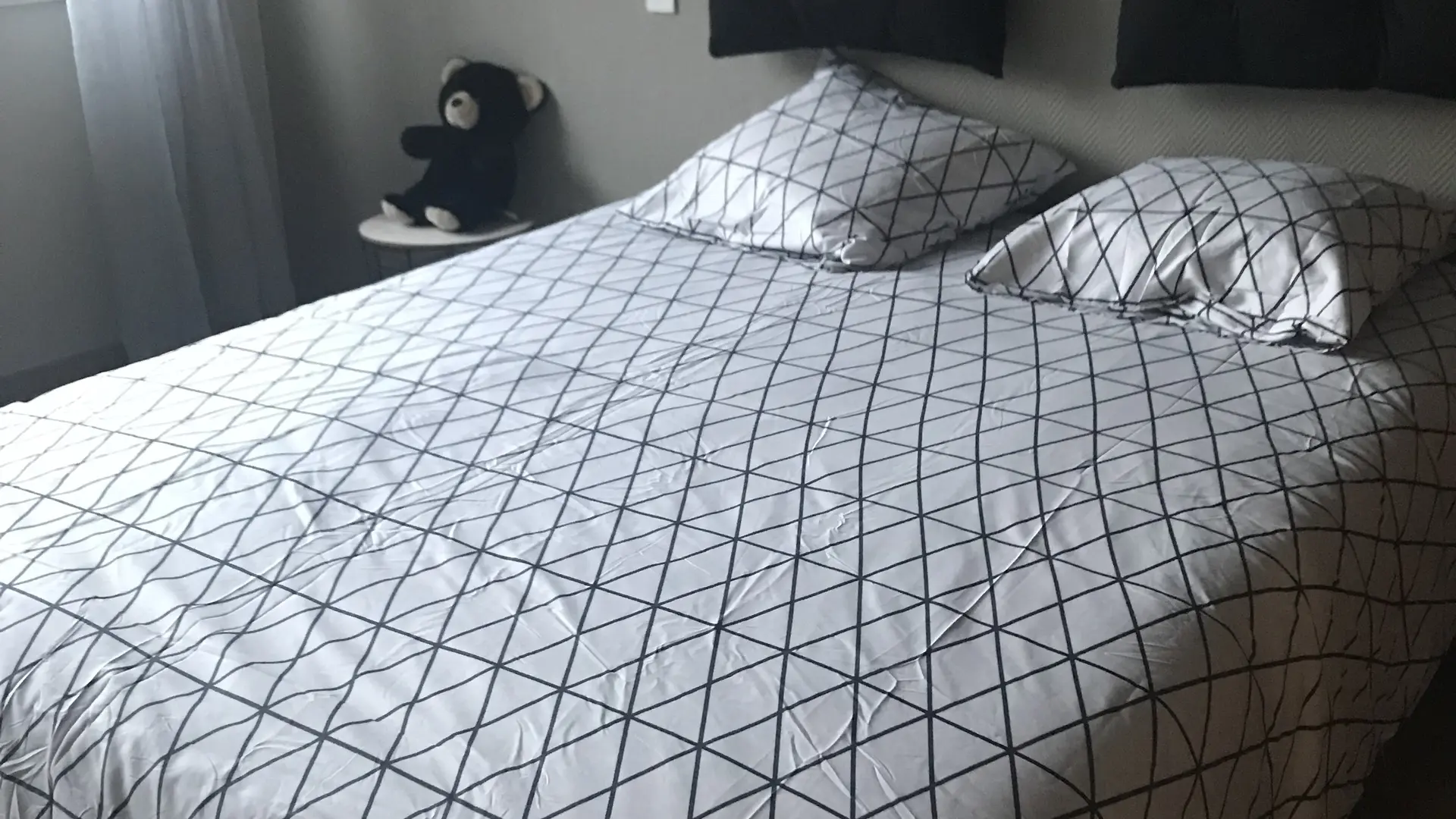 Ce F4 de 89 m2 (5 pers.) situé à 50 m de la piscine et à 800 m des Thermes et du débarcadère propose : une cuisine, une salle à manger avec convertible 2 personnes, une chambre grand lit, une chambre lits jumeaux, salle d'eau avec douche italienne, wc séparé.