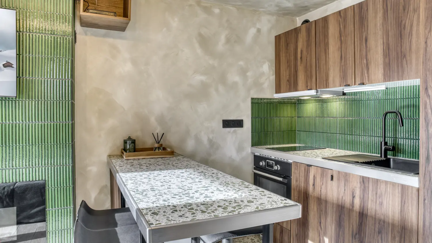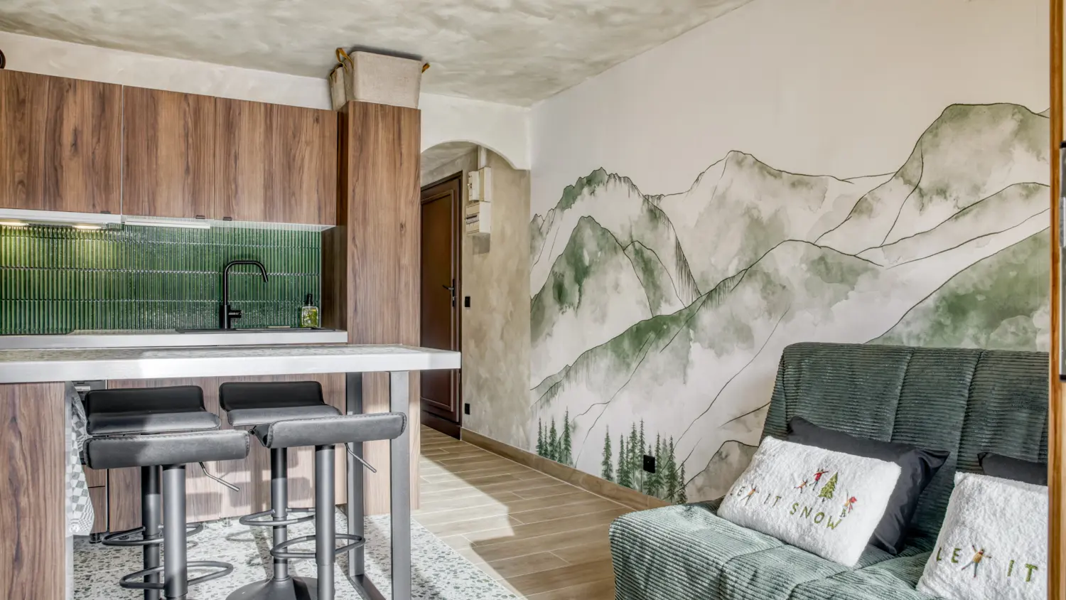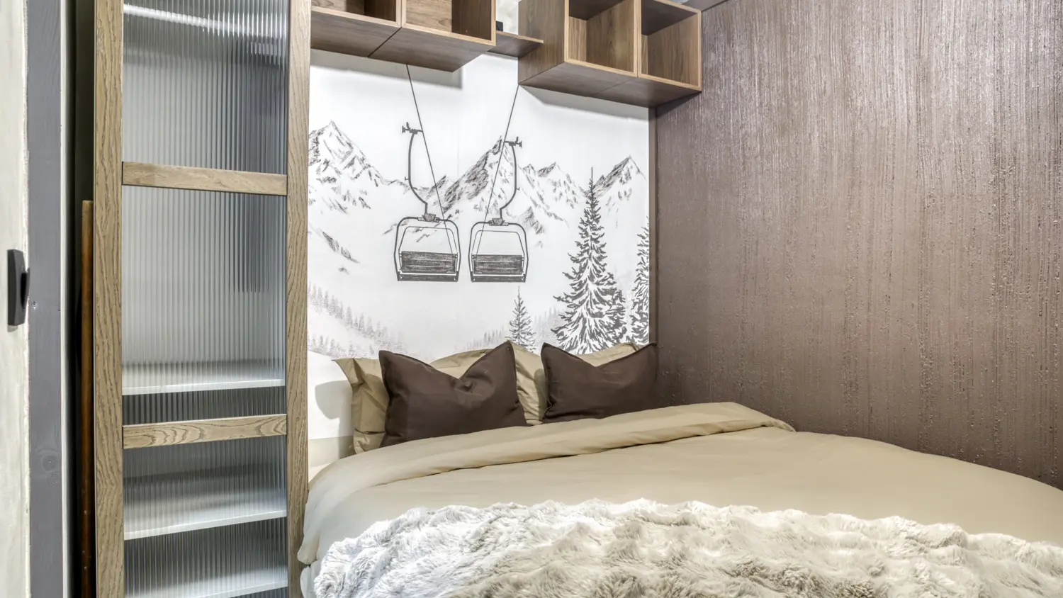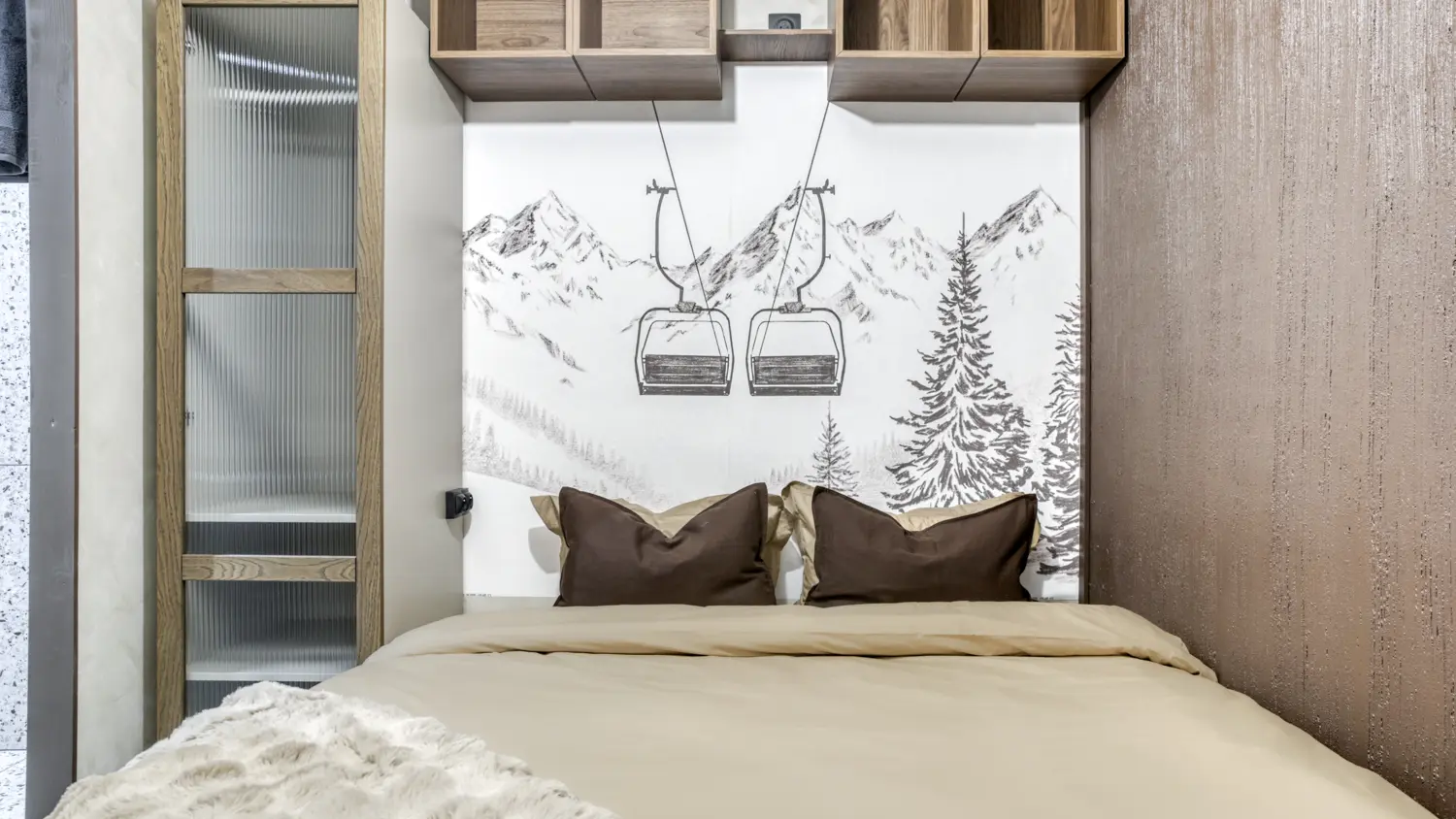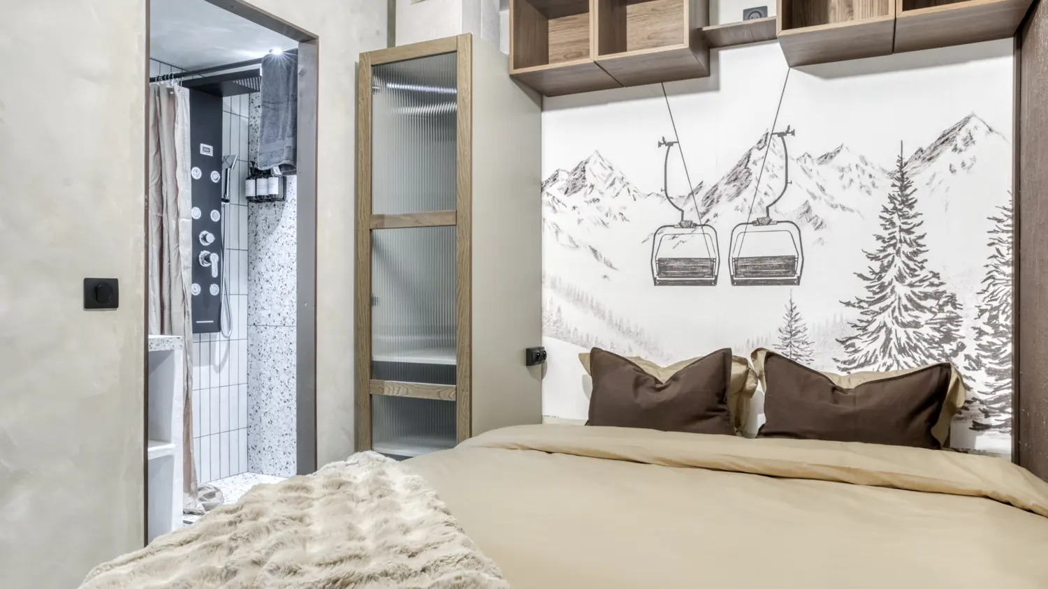 Dans un style chaleureux mêlant bois et tapisserie montagne, ce cocon est idéal pour une escapade au calme.