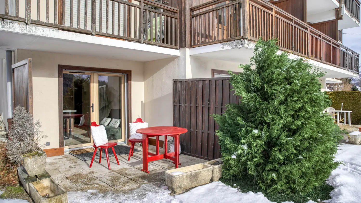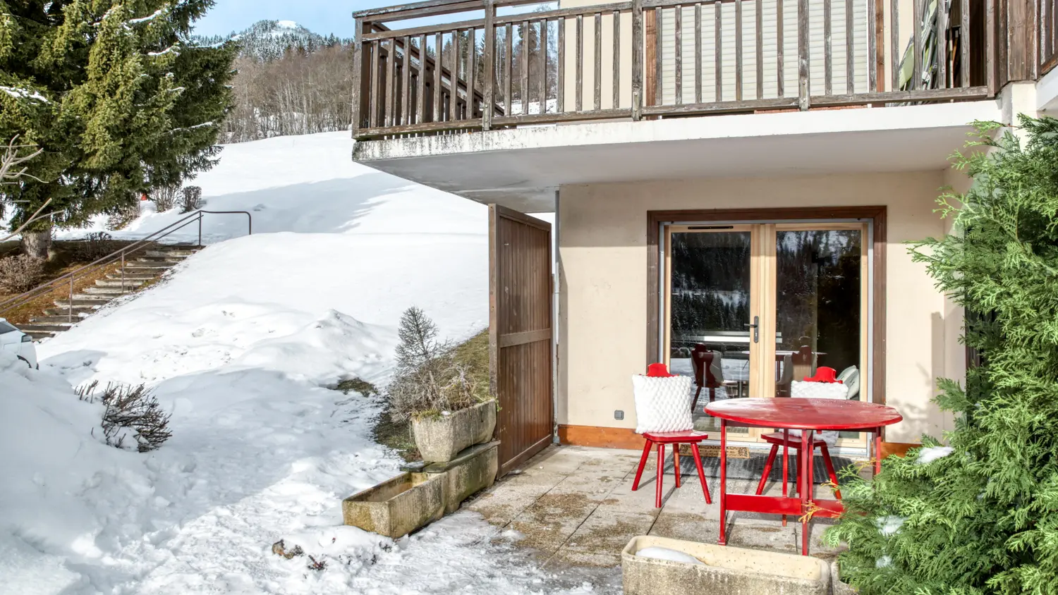Situé en rez-de-chaussée dans un environnement calme, l’appartement se trouve à seulement 5 minutes en voiture des pistes de ski et des sentiers de randonnée. Le stationnement est disponible au sein de la copropriété.