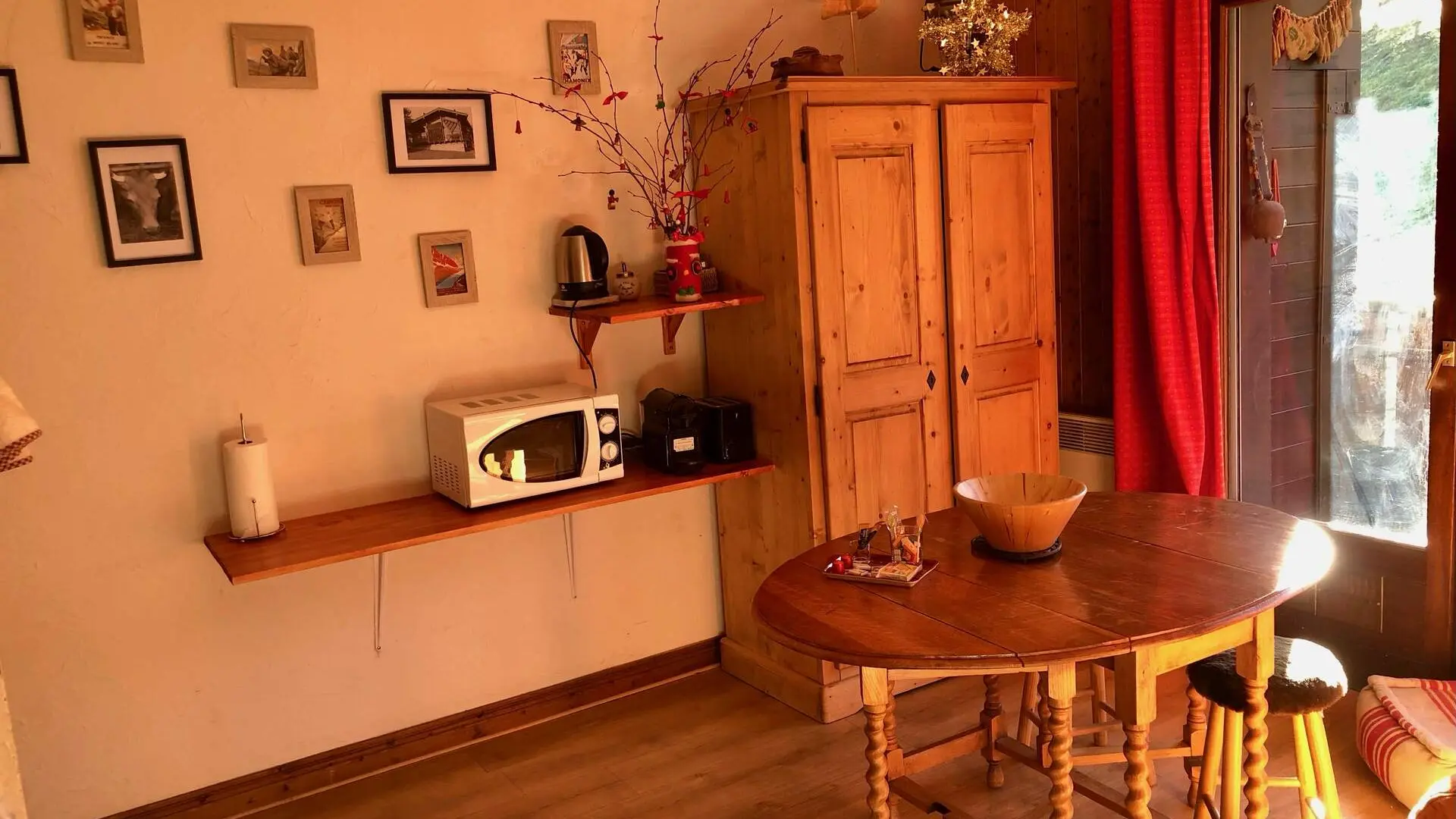 Appartement de 2 pièces pouvant accueillir 4 personnes. Situé au premier étage d'une petite copropriété localisée à 200 m des pistes de ski. A proximité d'un arrêt navette en hiver et à 2km du centre du village.