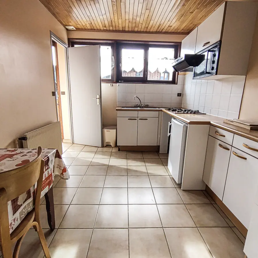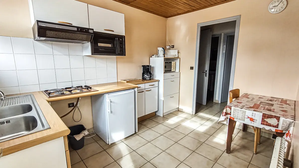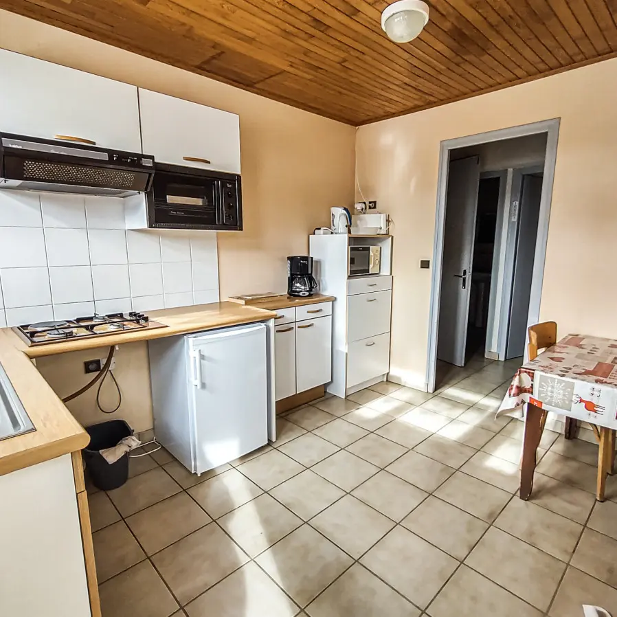 Le logement dispose d’une chambre avec un lit double et un lit simple, ainsi que d’un séjour avec un canapé‑lit, permettant une capacité d’accueil flexible pour les familles ou petits groupes. La cuisine séparée est entièrement équipée (four, micro‑ondes, réfrigérateur, plaque de cuisson, cafetière filtre & Nespresso), ce qui vous permet de préparer vos repas en toute autonomie.