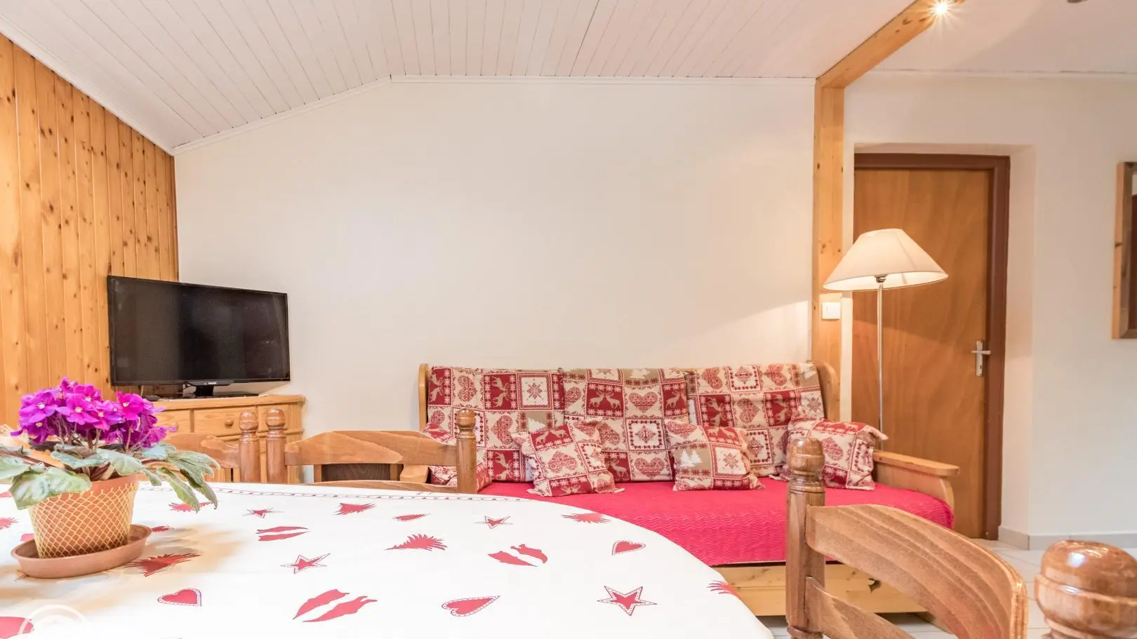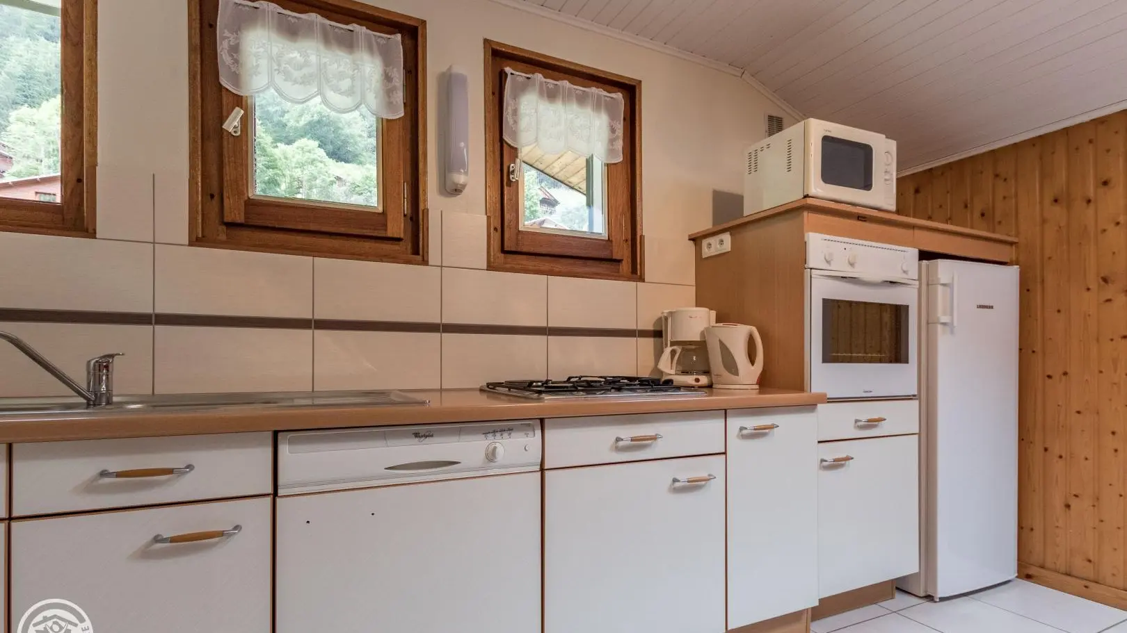 En vallée d'Abondance, maison comprenant 2 gîtes et le logement des propriétaires. Gîte de 56m² aménagé au 2ème étage : cuisine-séjour, 3 chambres dont 2 communicantes : chambre 1 (1 lit 160x200cm), chambre 2 (2 lits 90x190cm), chambre 3 (1 lit 140x190cm), salle d'eau (douche), wc indépendant. Chauffage central. Balcon sud, jardin commun avec salon de jardin privatif, barbecue. Location draps et linge de maison. Lit bébé sur demande. 1 seul animal accepté. Gîte situé sur piste de ski fond, à 300m des pistes de ski alpin de la station "La Chapelle d'Abondance" et en retrait de la route menant à Châtel. Navette gratuite à 200 m reliant les deux domaines skiables de la station et les Portes du Soleil. Chatel 5km. Lac Léman, Evian-Les-Bains, Thermes 32km.