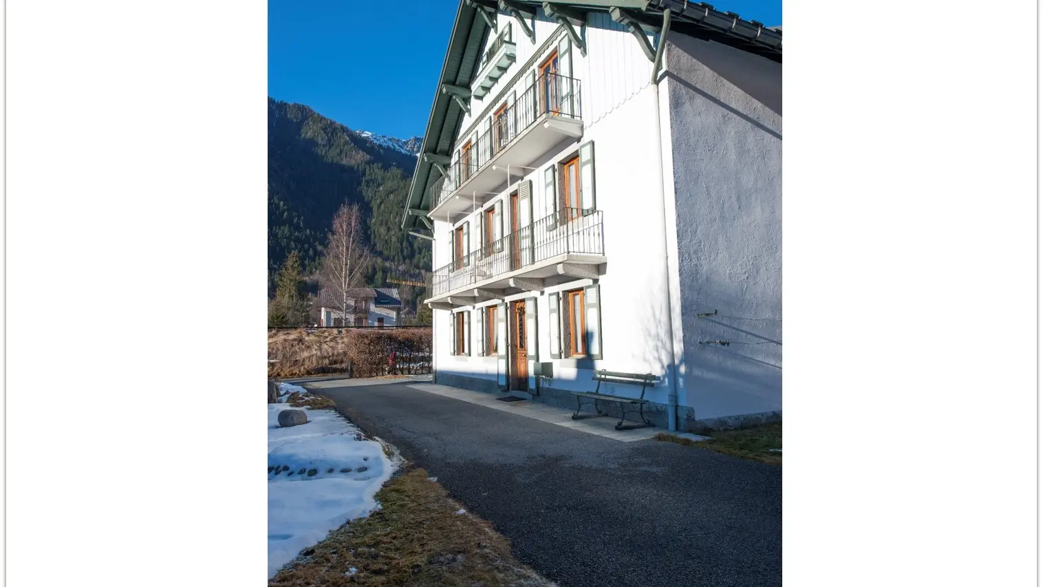 Appartement 3 pièces dans une maison du pays avec vue sur la chaîne du Mont Blanc situé au calme dans le village des Mouilles, à proximité du centre sportif, au départ des pistes de fond. L’arrêt de bus est à 100 mètres et le centre ville à 500 mètres.