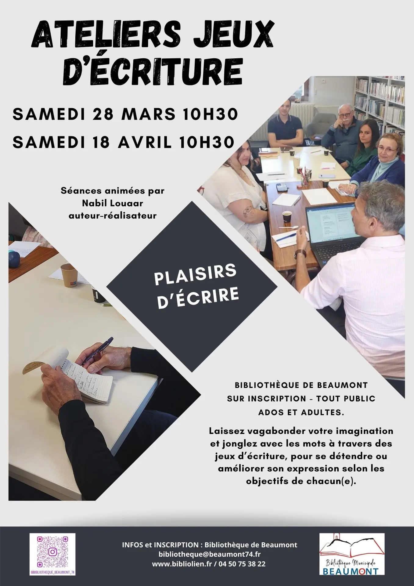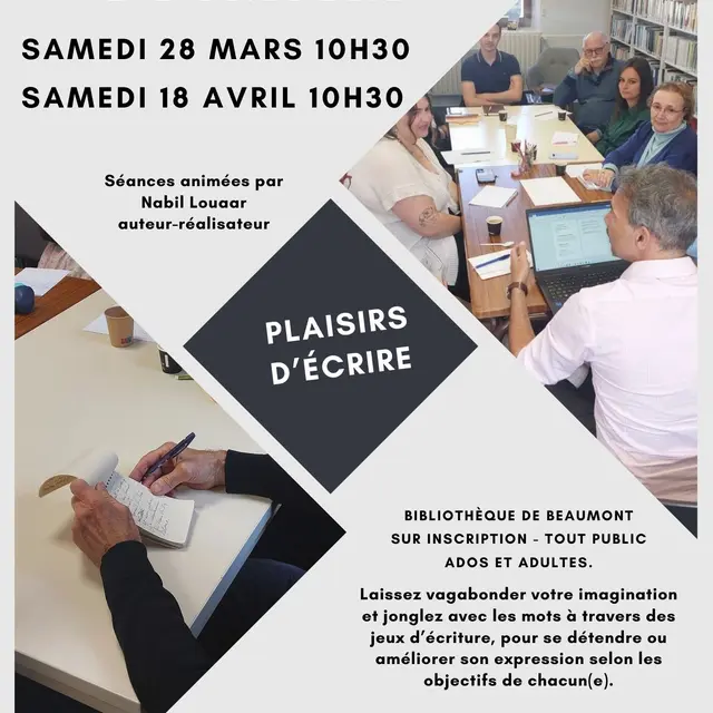 A la bibliothèque de Beaumont- sur inscription - tout public - adulte.