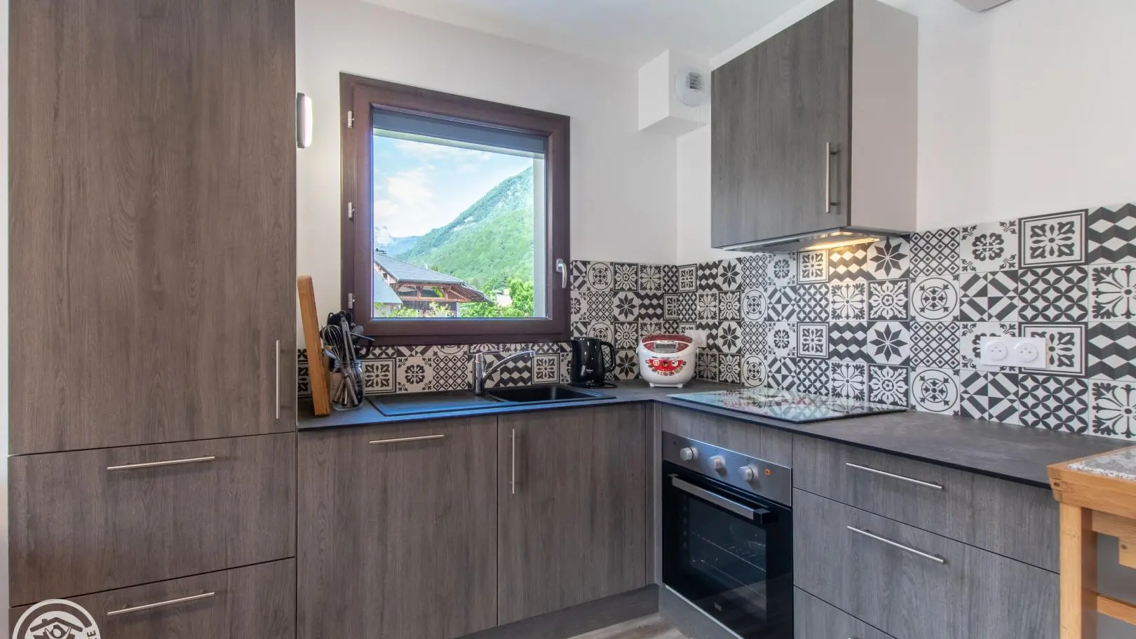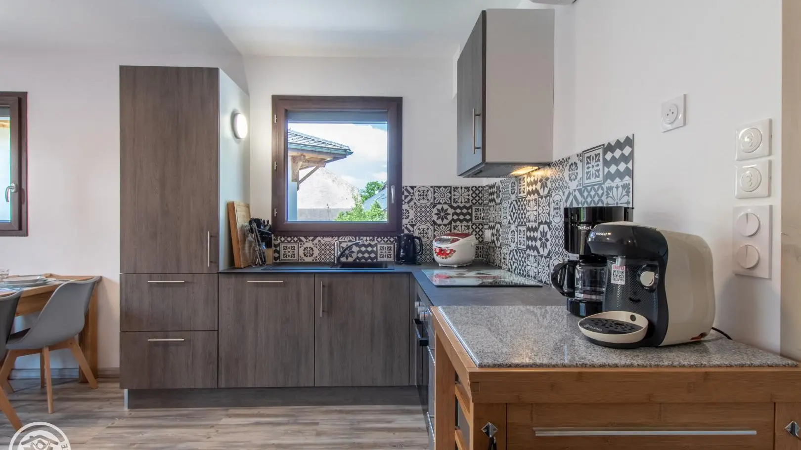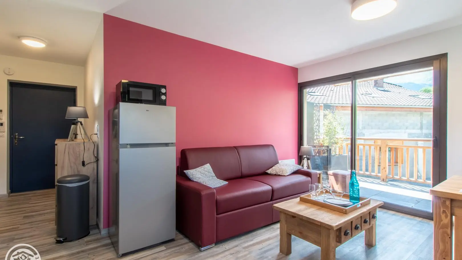Dans une ancienne grange complétement rénovée en un petit immeuble comprenant quatre autres gîtes (2 au même niveau, 2 au 2ème étage), appartement de 40m² aménagé au 1er étage. Gîte situé dans un hameau calme de Doussard.