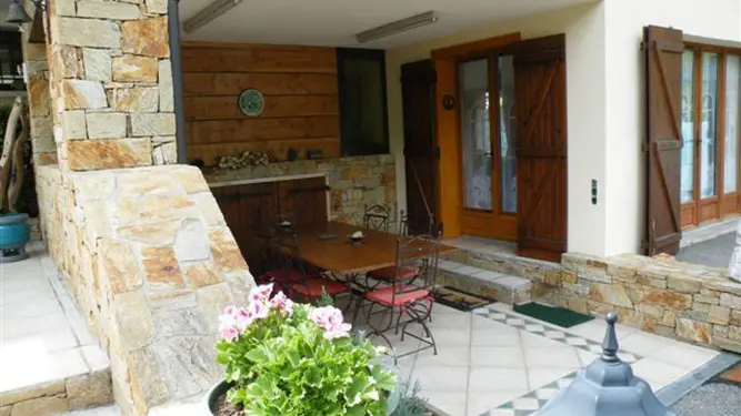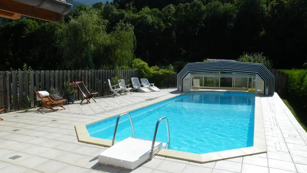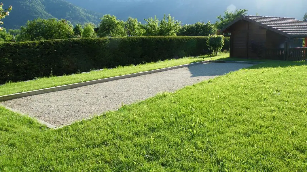 Entre Lac d'Annecy et Parc Naturel du Massif des Bauges, maison comprenant 2 gîtes et le logement des propriétaires sur 2900 m2 de terrain. Gîte de 48 m2 en rez-de-jardin, accès indépendant. Cuisine /séjour (convertible Rapido 2 personnes), lecteur DVD, chambre (1 lit 2 personnes), salle de bains/wc. Chauffage central. Belle terrasse avec accès direct piscine couverte/ chauffée (mai à septembre), terrain de boules, barbecue, jeux d'enfants. Spa extérieur accessible en supplément à régler sur place. Lac Annecy/plage à 2 km, réserve naturelle, site parapente 2 km, ski Seythenex 15 km. Golf : Giez 7 min. Piste cyclable Ugine/Annecy à 400 m. Les propriétaires ont chiens et chats. Caution ménage incluse dans la caution globale Heure d'arrivée à convenir impérativement avec les propriétaires entre 16h et 19h. Rappel : une caution est demandée à l'arrivée avec un état des lieux.