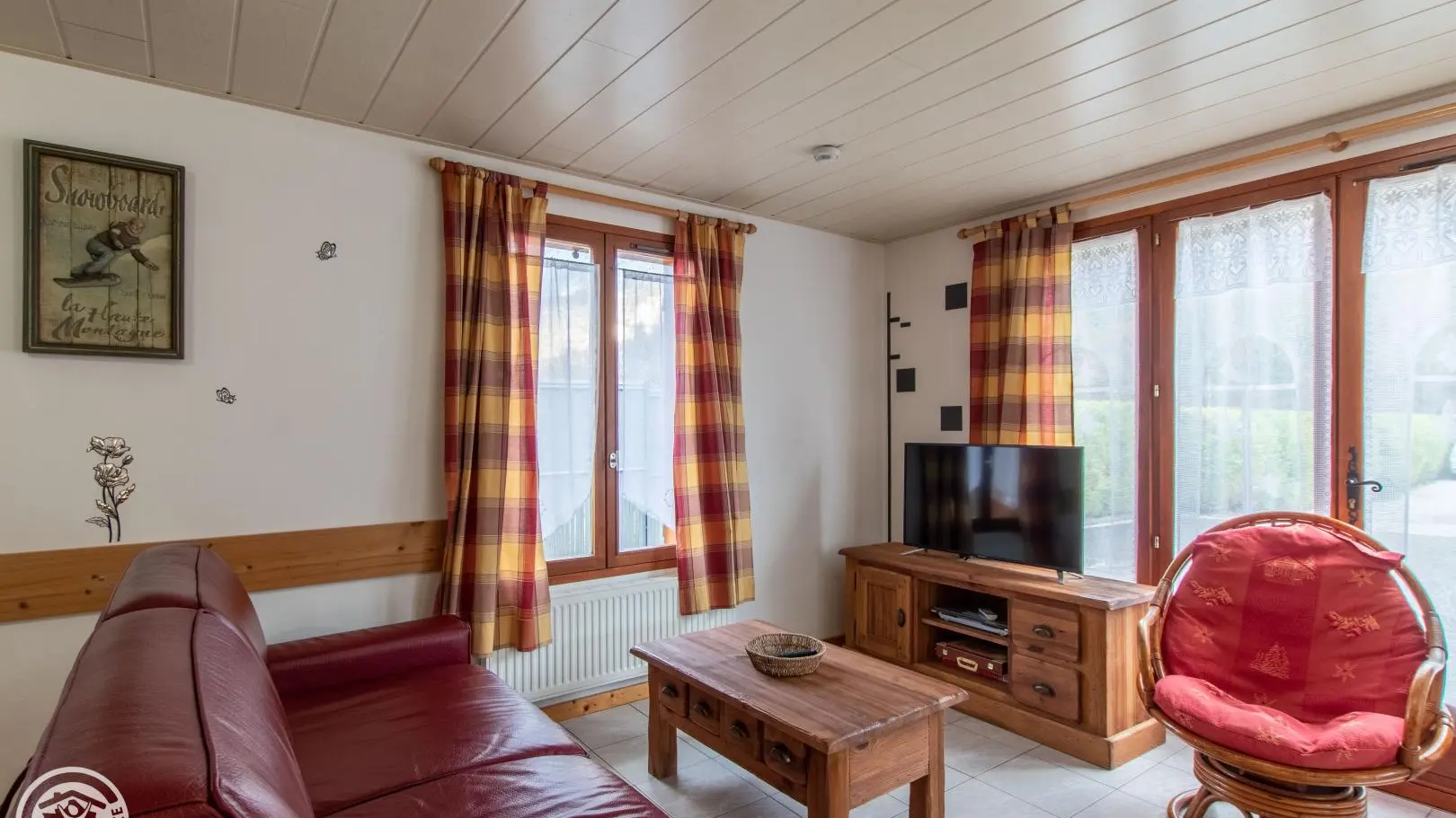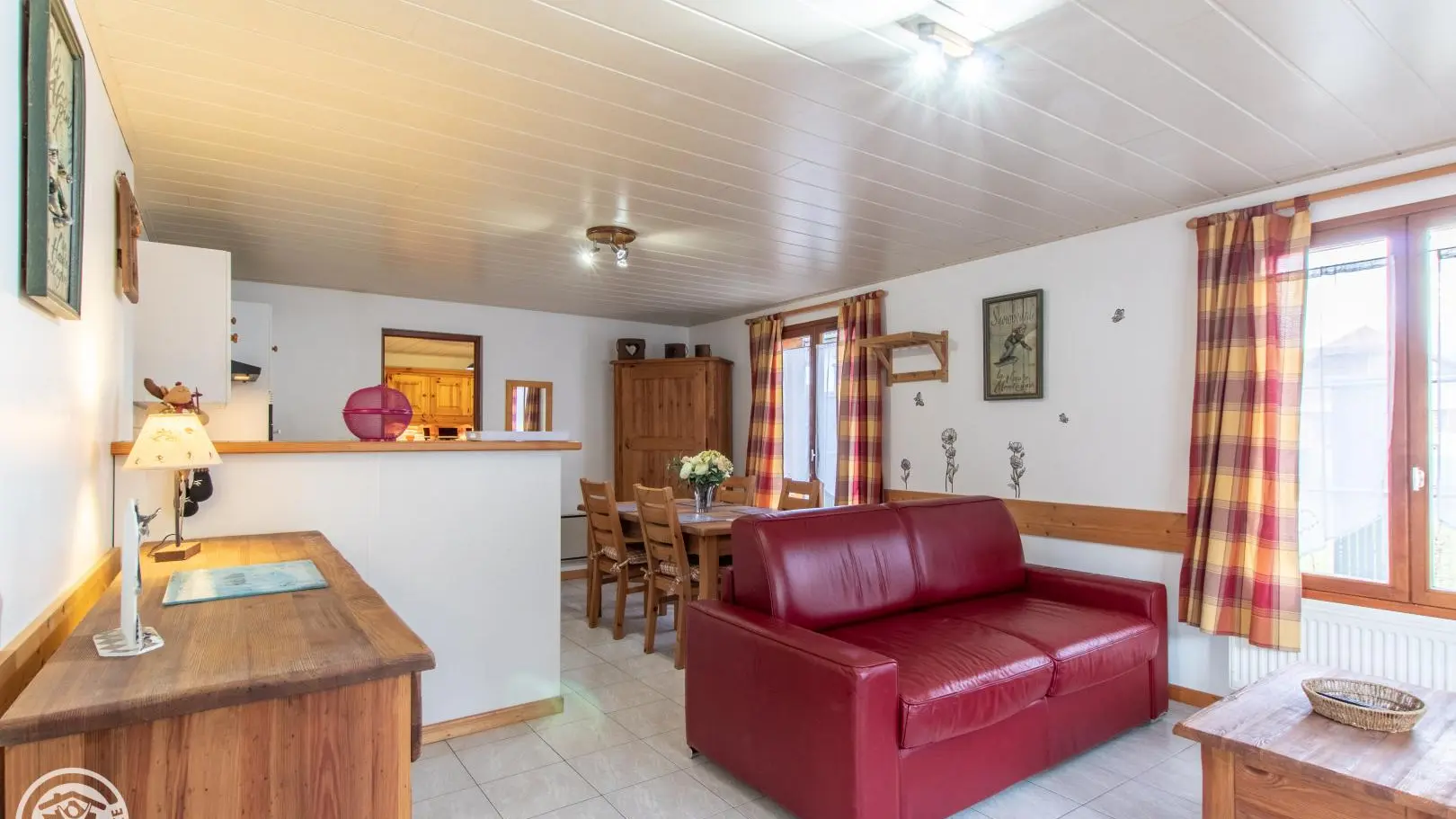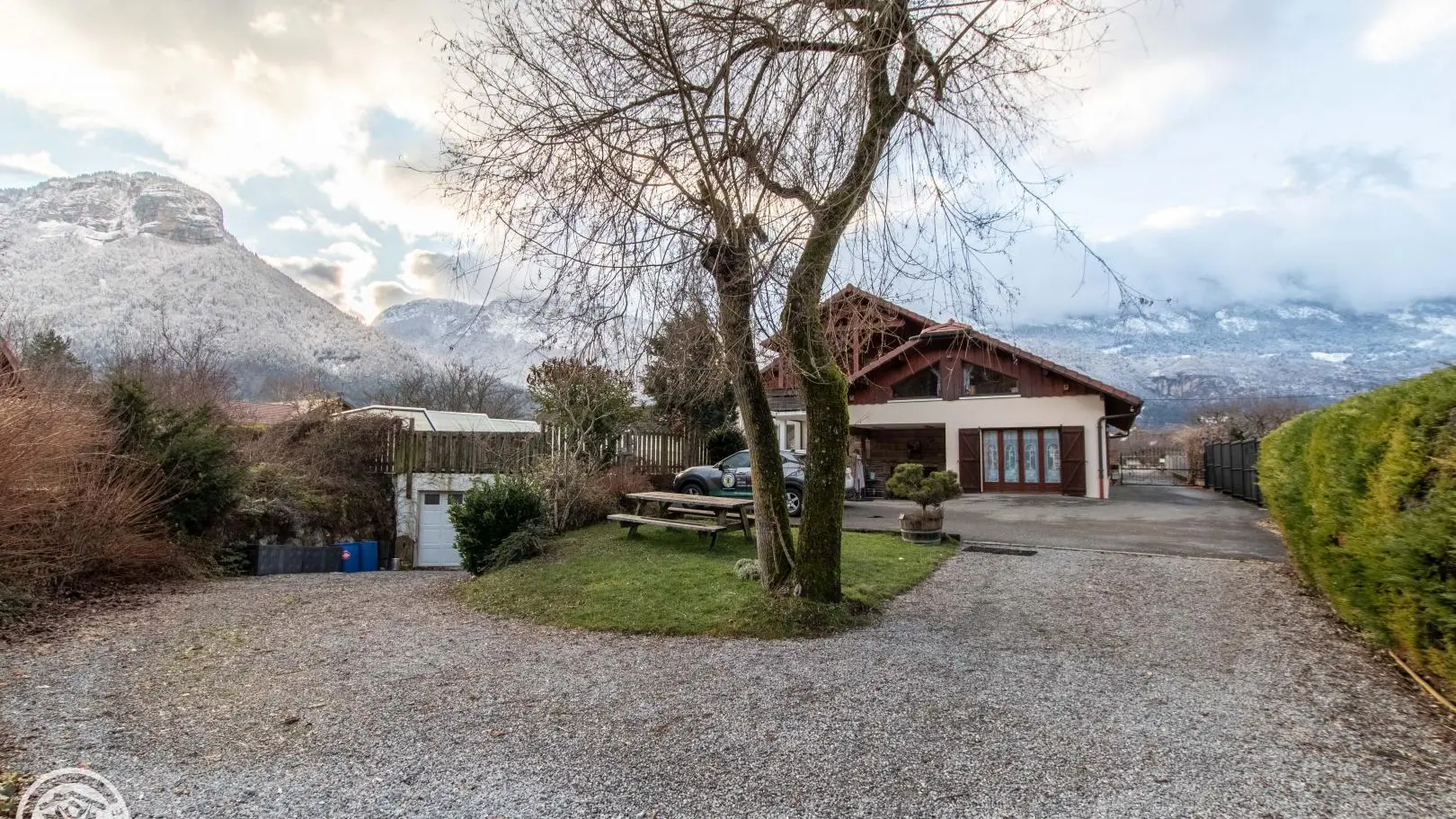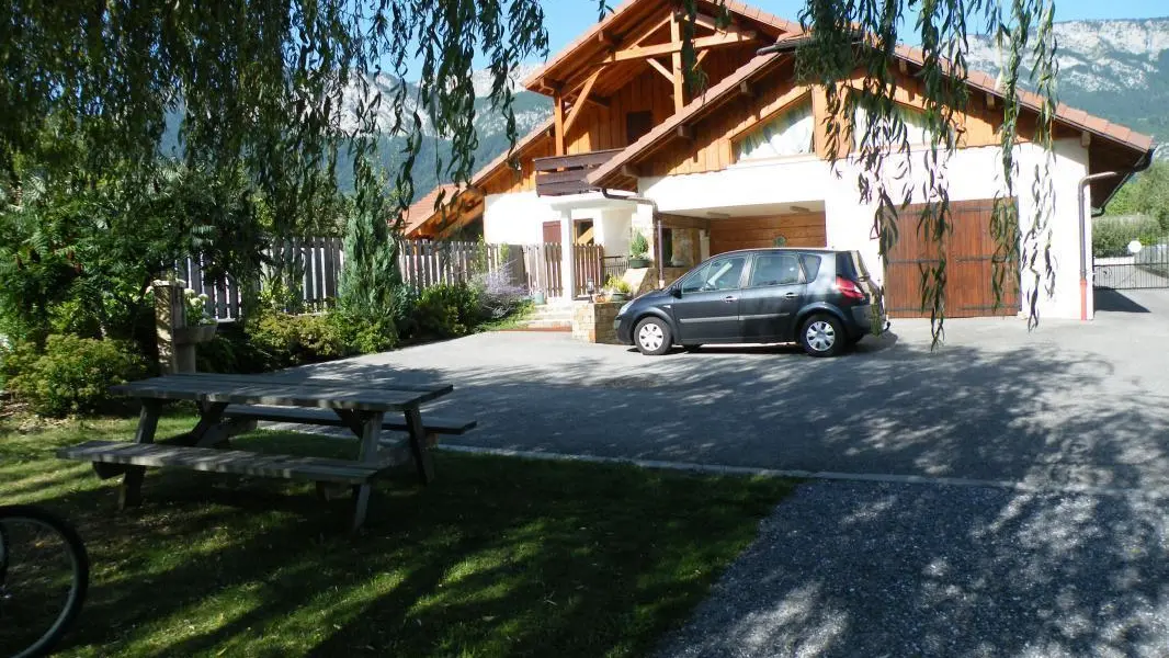 Entre Lac d'Annecy et Parc Naturel Massif des Bauges, maison comprenant 2 gîtes et le logt des propriétaires sur 2900 m2 de terrain. Gîte de 48 m2 en RdC, accès indépendant. Cuis (m.ondes)/séjour (clic-clac 2 pers.+ 1 lit 1 pers.), lecteur DVD, WIFI, c...