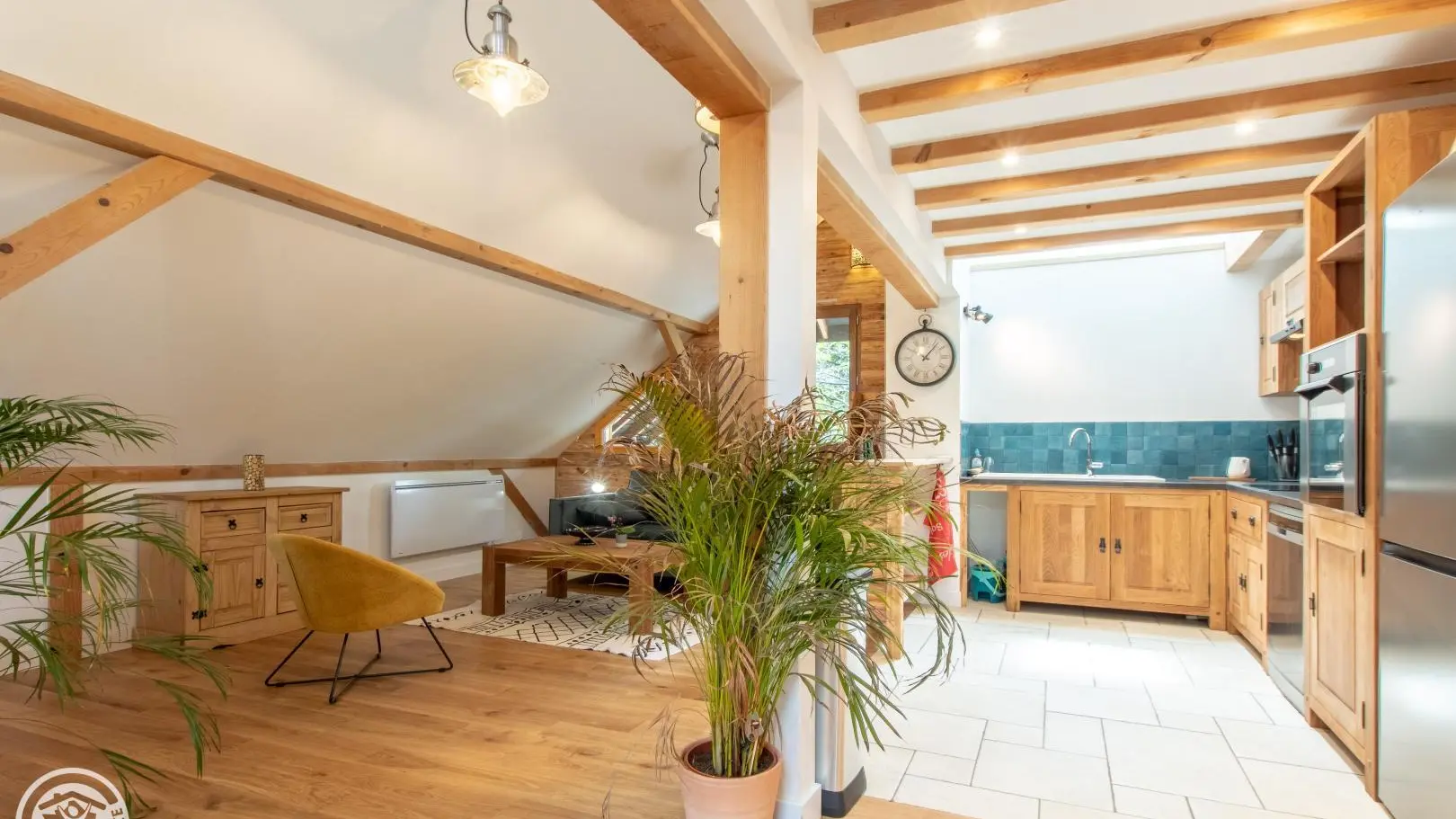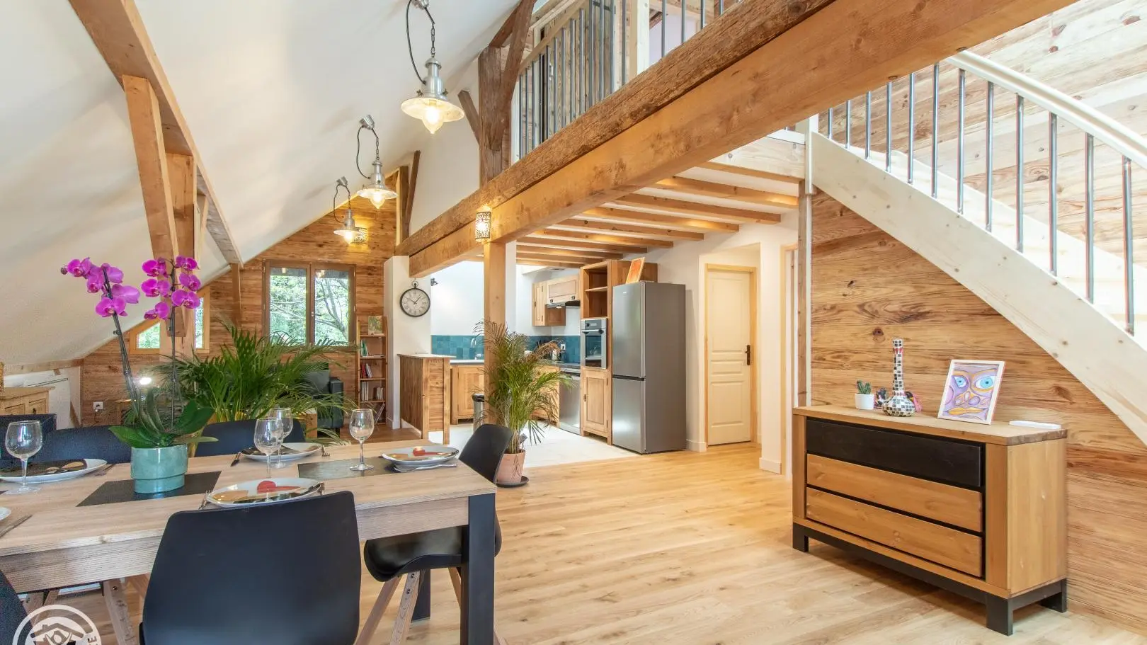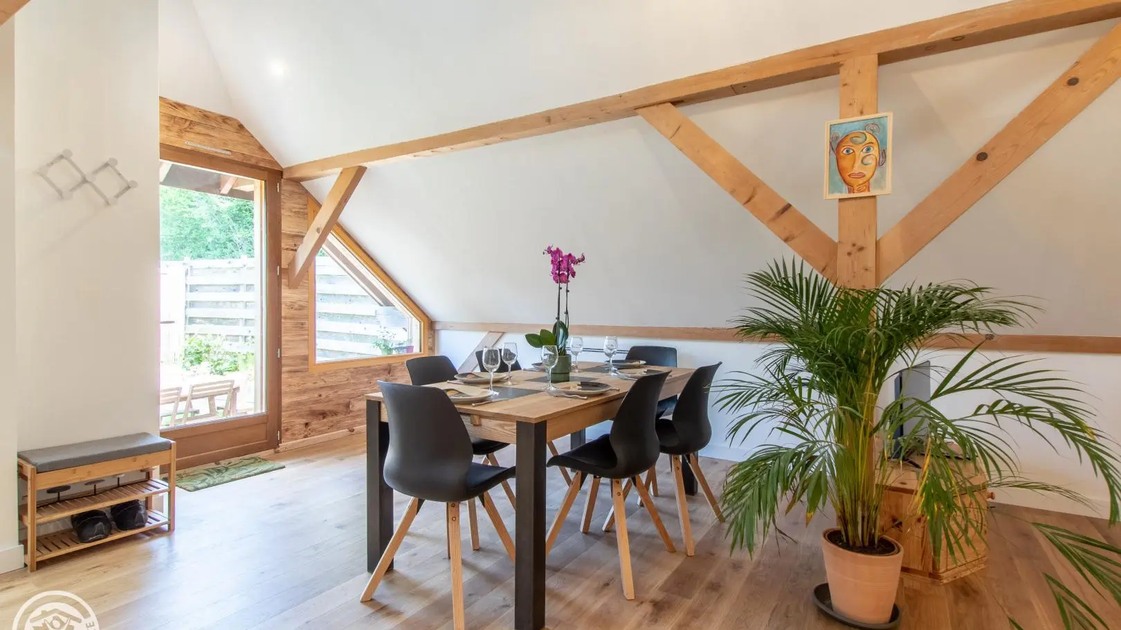 Gîte de 80 m² en partie mansardée situé dans de la maison des propriétaires (ancienne ferme de pays). Accès piétons indépendant. Espaces lumineux avec nombreuses ouvertures & velux.