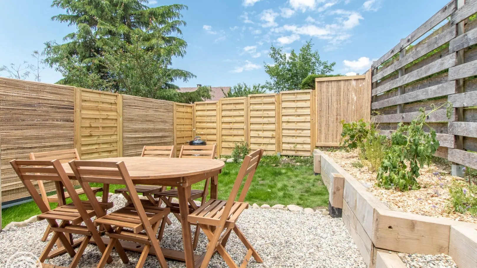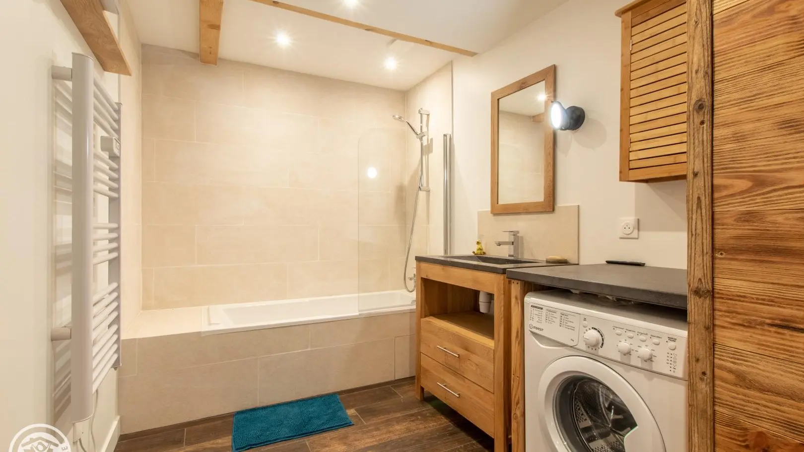 Au rez-de-jardin : salon avec table de repas, séjour avec canapé, fauteuils, TV connectée. Cuisine ouverte sur séjour. Salle de bains avec baignoire/douche, lave-linge. WC indépendant. Chambre 1 avec lit 140x200 cm. A l'étage : chambre 2 (lit 160x200 cm), chambre 3 (1 lit 90x190 cm + 1 second matelas gigogne). WC indépendant. Jardin privatif clos avec salon extérieur et barbecue. Local vélo disponible sur demande. Borne de recharge véhicule électrique publique à 1 km. Accès au gîte à pied depuis le stationnement situé du côté propriétaires / alpagas de la maison.