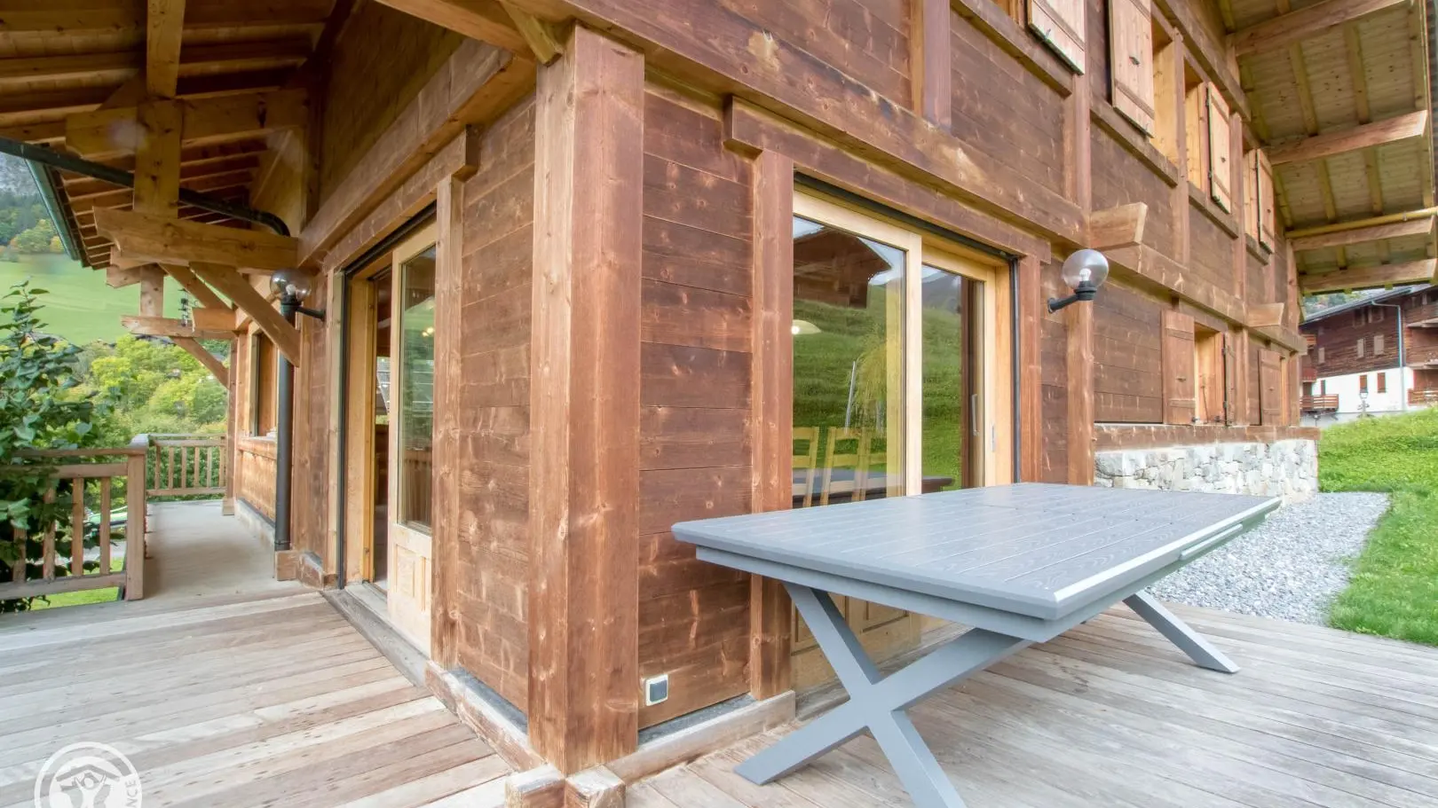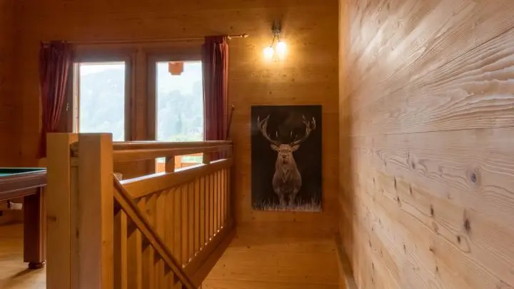 Au cœur du hameau du Chinaillon, chalet indépendant (245m²) aménagé sur 3 niveaux. Au 1er étage: grande pièce de vie avec cuisine ouverte sur séjour (cheminée) et salle à manger, accès à la terrasse, jardin et balcon, Chambre 1 (1 lit 160x200, 1 lit 90x200), salle de bains, WC indépendant. Au 2ème étage: mezzanine (billard, TV, balcon), Chambre 2 (3 lits 90x200), Chambres 3 (1 lit 160x200), chambre 4 (1 lit 160x200), Chambre 5 (2 lits 90x200), salle d'eau, WC indépendant. Au Rez-de-chaussée: Chambre 6 (1 lit 160x200), salle d'eau, WC, buanderie, jeux (ping-pong, baby-foot). Garage, parking. Draps fournis pour location à la semaine uniquement. Chauffage central. Ski: Grand-Bornand Chinaillon sur place, ski de fond à 1.6km, nombreuses ballades/randos à proximité. Activités été/hiver au Grand-Bornand à 7km. Ferme des propriétaires à proximité. Lac d'Annecy à 31km. Animal (2 maximum) accepté uniquement après accord du propriétaire.