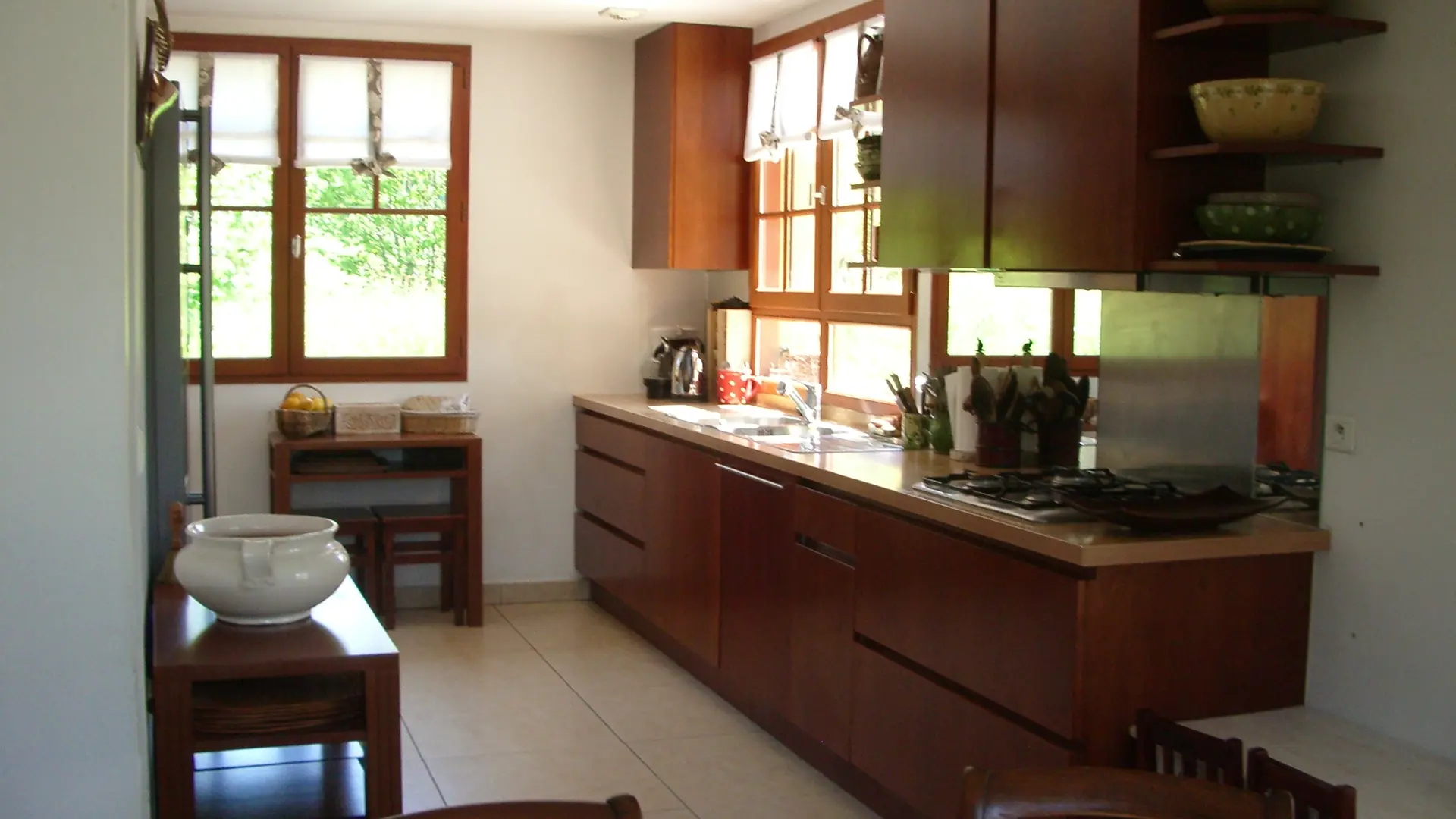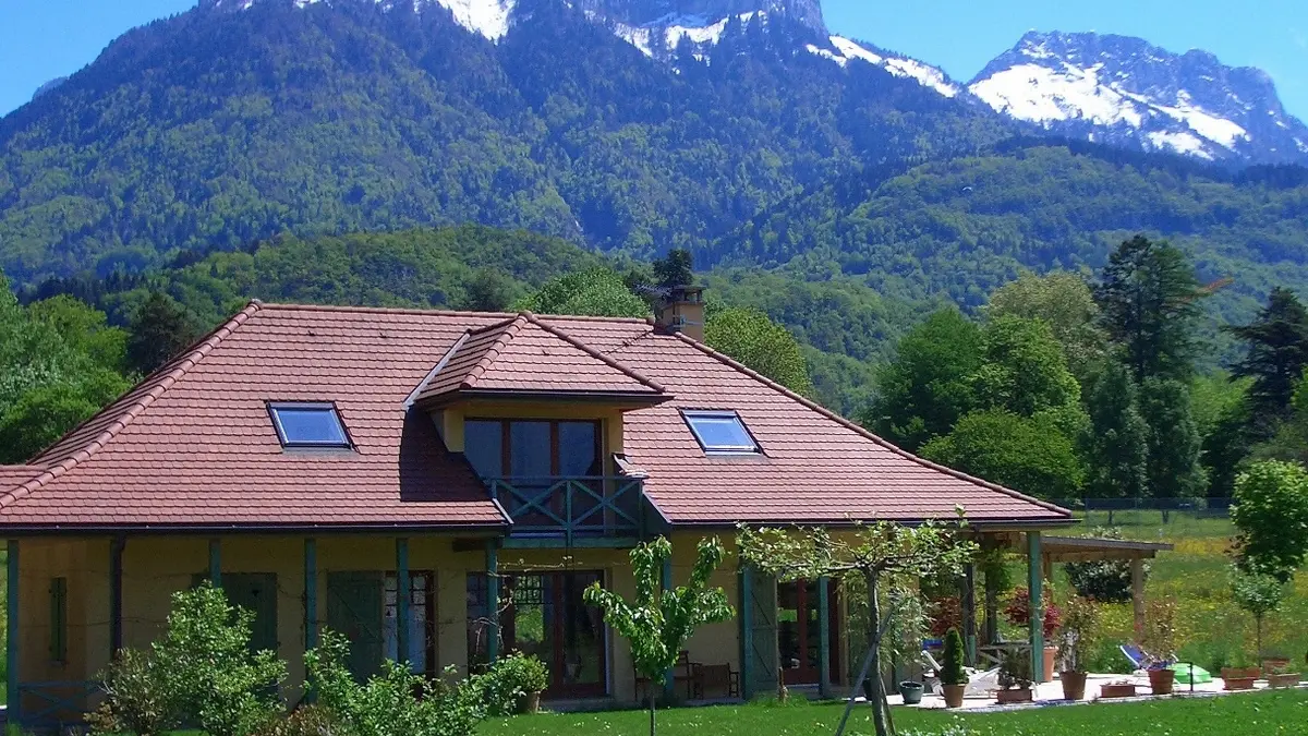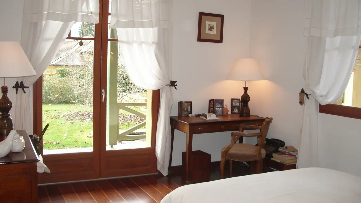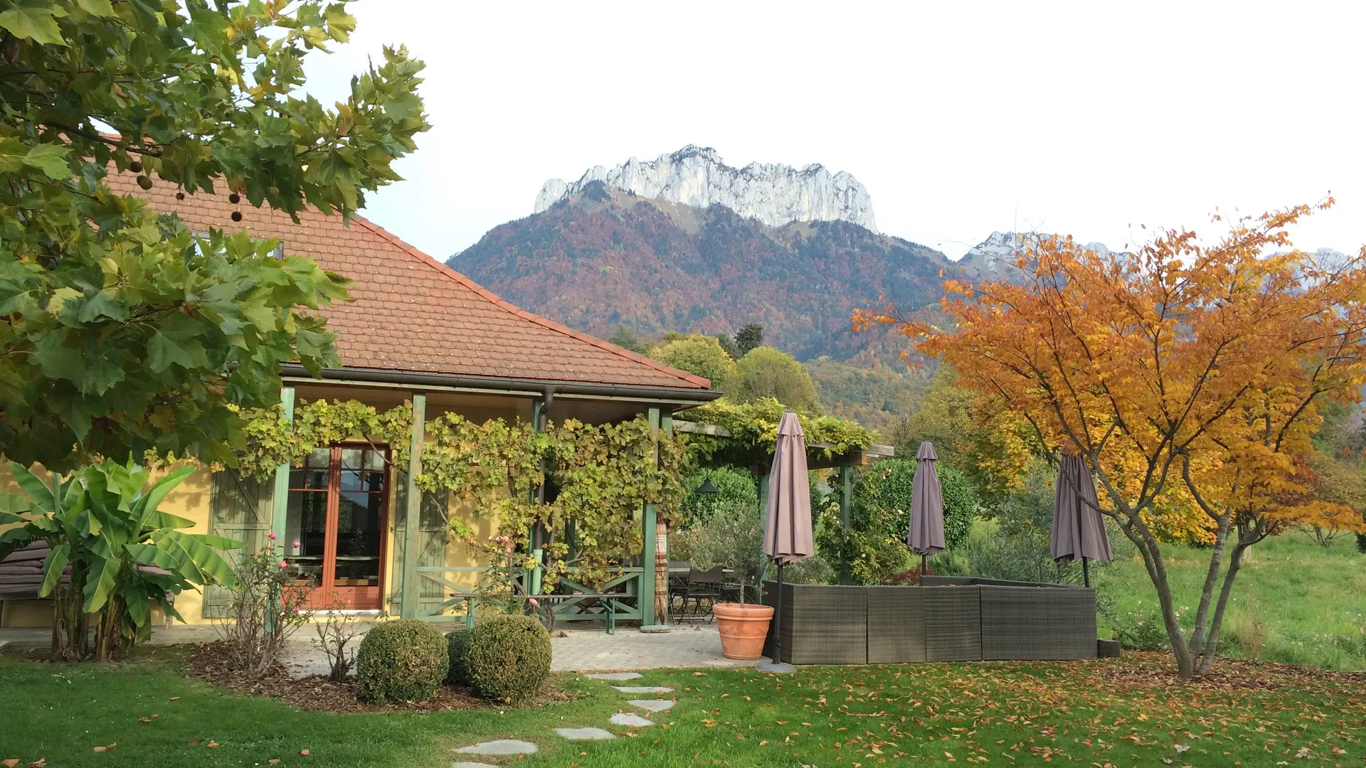 Maison plain pieds, très belle vue, calme, charme, décoration contemporaine, raffinée. Mezzanine bibliothèque, galerie ombragée, vigne+glycine, 2 pergolas. Espace japonais avec bassins. Tennis et lac à proximité, golf et équitation à 5 min, ski à 30 min.