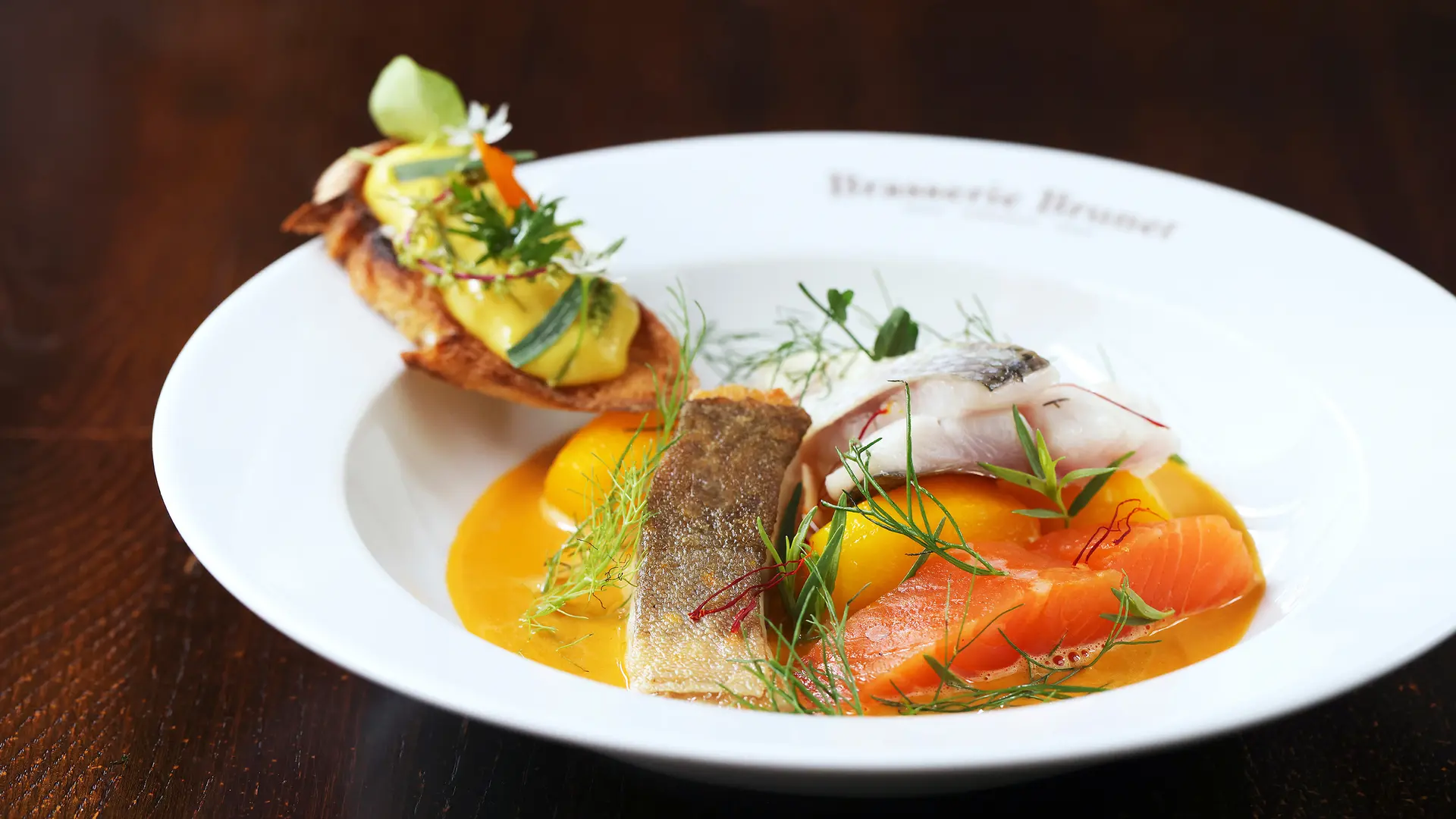 Créée en 2018 par le Chef Laurent Petit en plein centre d'Annecy, la Brasserie Brunet vous invite à la gourmandise saucée, inspirée du territoire qui l'entoure. En cuisine depuis 2021 mais aux côtés du Chef depuis 10 ans, le Chef Nicolas Guignard et sa compagne Pauline Lemettre ne le répéteront jamais assez, simplicité, convivialité et respect terrien, dessinent les contours de leur identité. Ensemble, ils ont à cœur de rendre hommage aux essentiels, dans une cuisine portée par le garde-manger nourricier d'antan, ses Femmes et Hommes au service du terroir. Ainsi, ils travaillent uniquement en circuit ultra court, s'adaptant au quotidien des producteurs, aléatoire en fonction des saisons, du temps et son impact direct sur le monde du vivant. Ainsi, ils utilisent la matière dans son entièreté, dans des sauces, bouillons, chips, croustillants ou jus serrés rassurants. Veillant toujours à ne rien gaspiller tout en préservant la planète, ils font valser écoresponsabilité et pertinence du goût à l'assiette, avec une audace assumée.