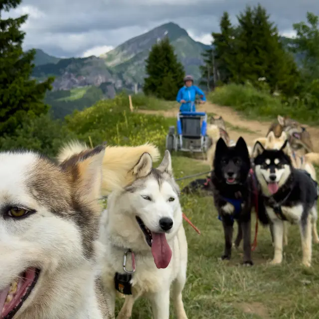 Installé(e)s sur un engin tout terrain, tracté par un attelage de 10 à 12 chiens, Justine musheuse professionnelle vous emmène pour une expérience unique dans un cadre naturel en plein cœur de la forêt.