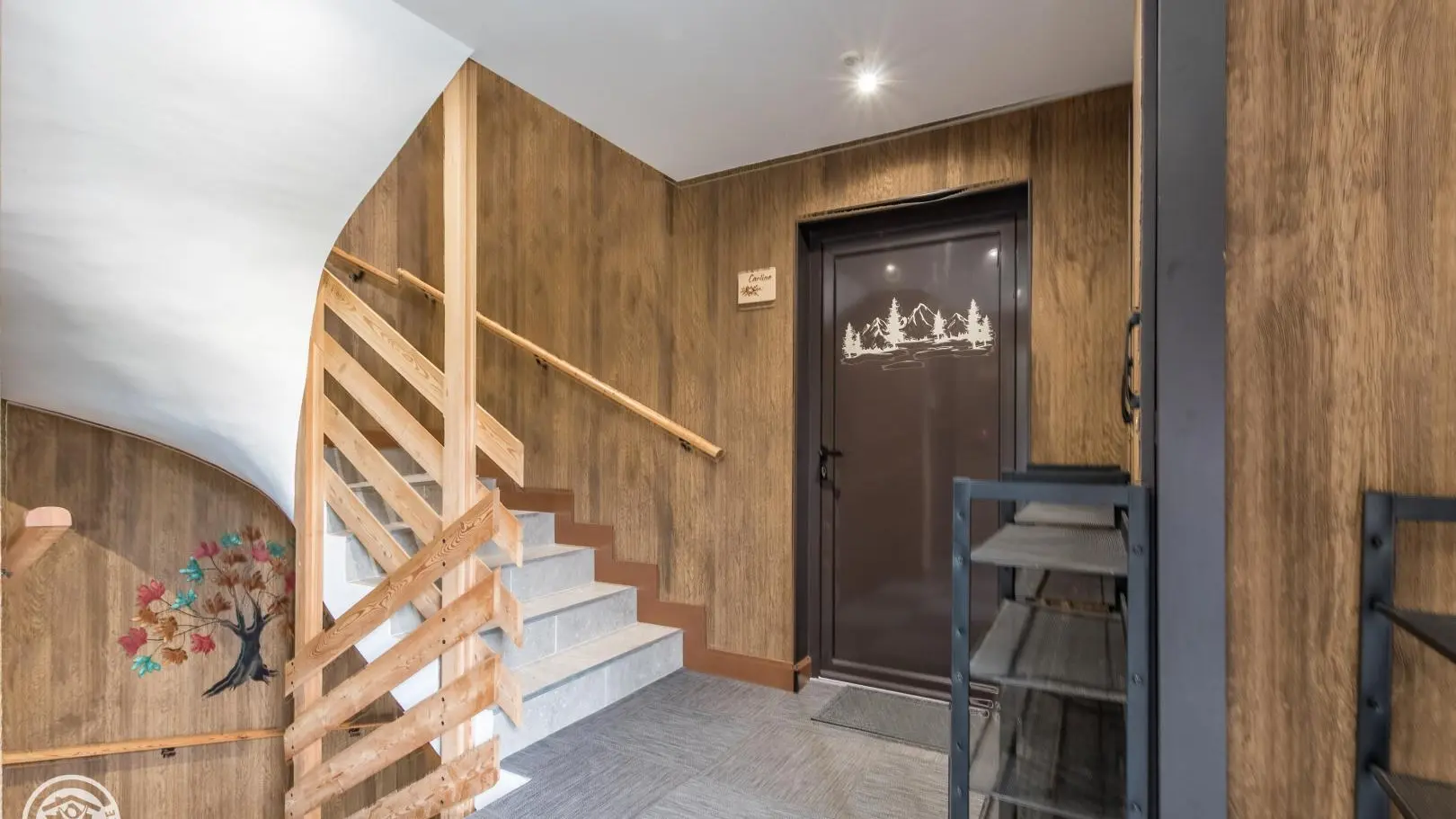 Entrée commune au rez-de-chaussée, et accès au gîte par un escalier intérieur.