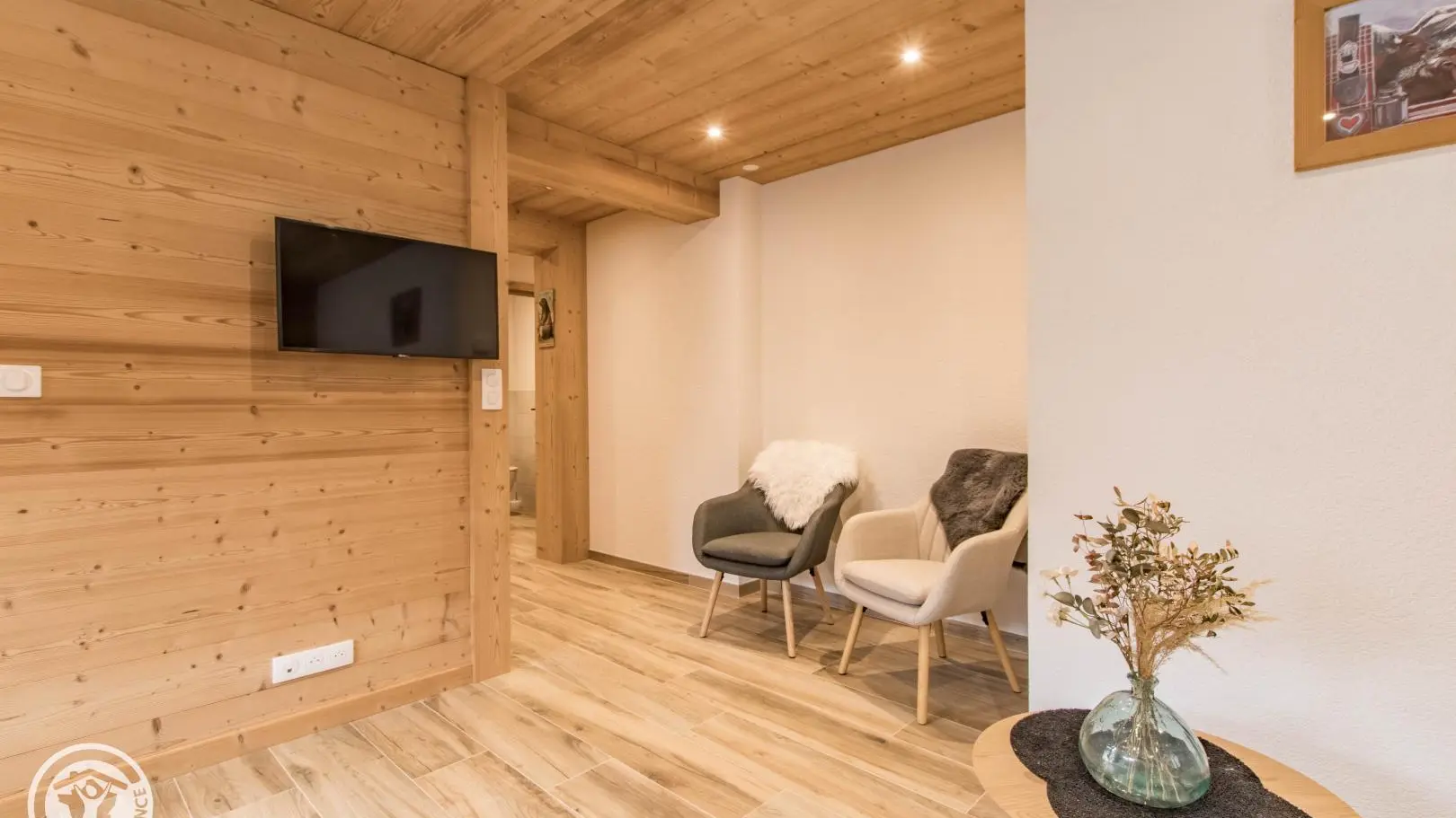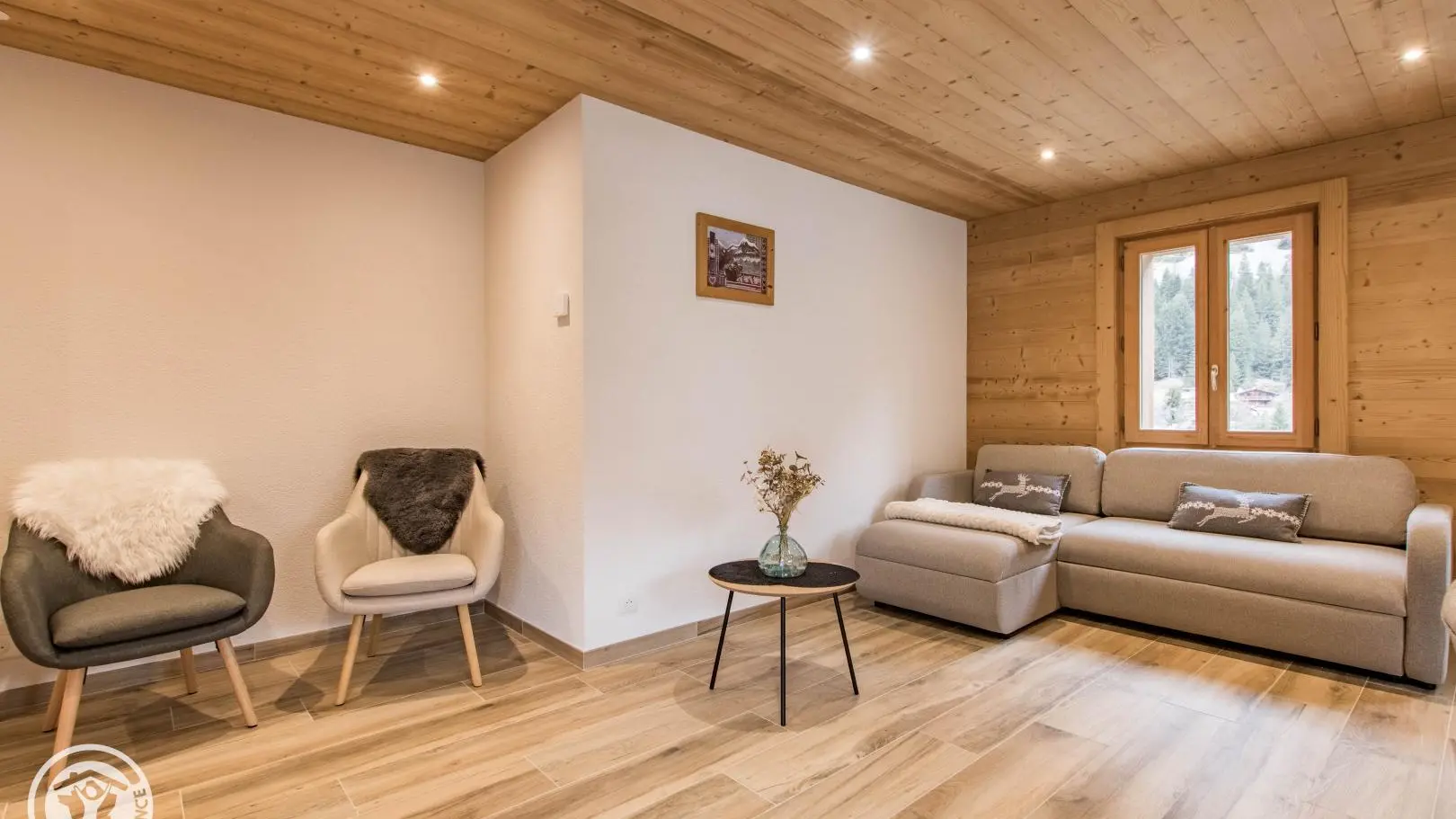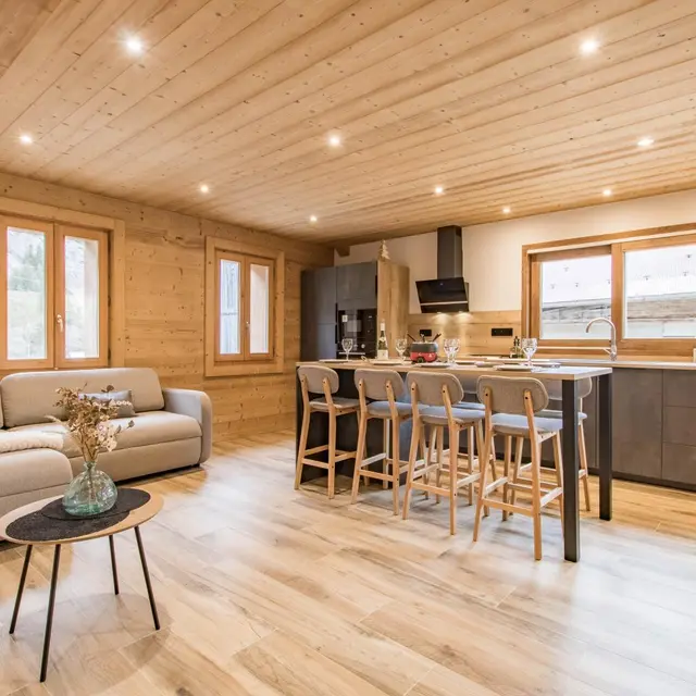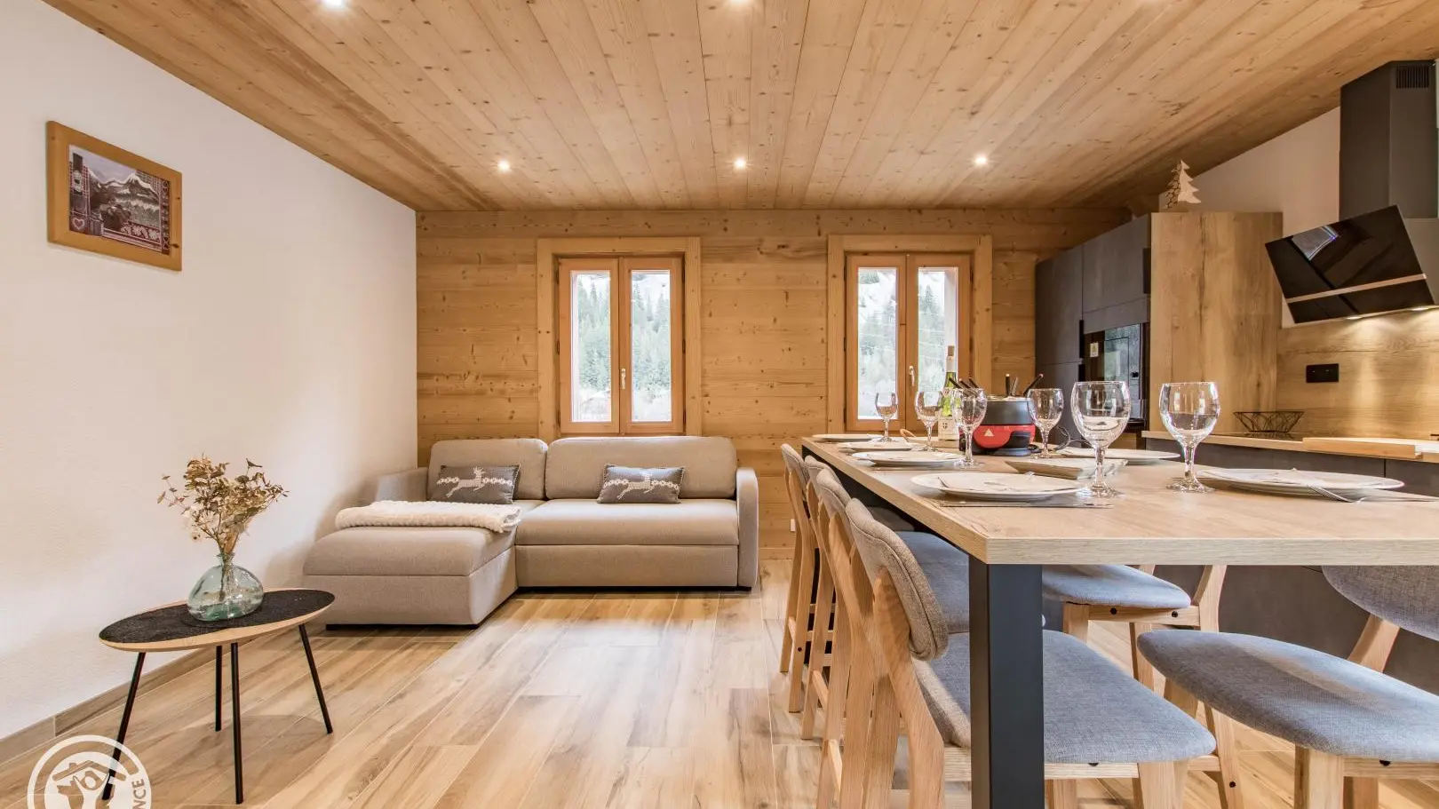 NOUVEAU : Gîte de 77m² aménagé de plain-pied au rez-de-chaussée d'une ancienne ferme traditionnelle typique de la Vallée d'Abondance entièrement restaurée, comprenant également le logement des propriétaires.